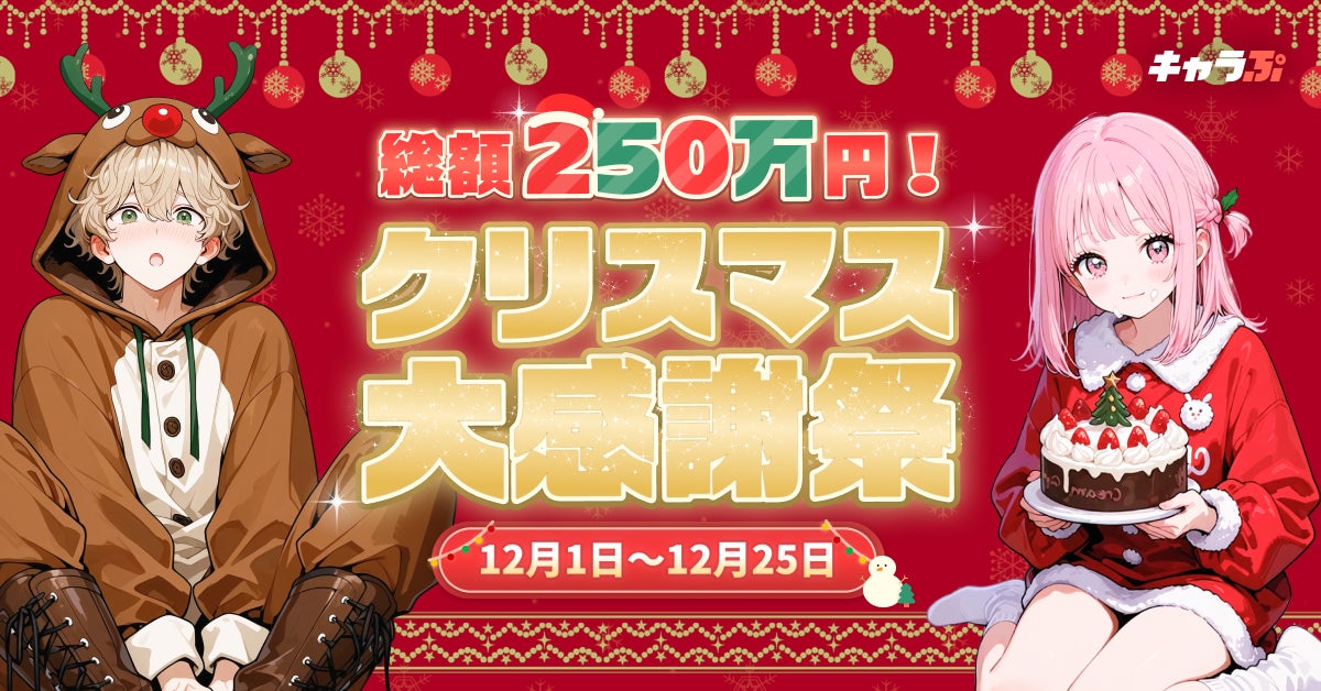 株式会社リートンテクノロジーズジャパン(本社:東京都港区、代表:李 世榮、以下「リートン」)は、同社が運営するチャット型シミュレーションアプリ『キャラぷ』において、2025年12月1日(月)より、合計800名が当たる総額250万円規模の「キャラぷクリスマス大感謝祭」を開催いたします。
