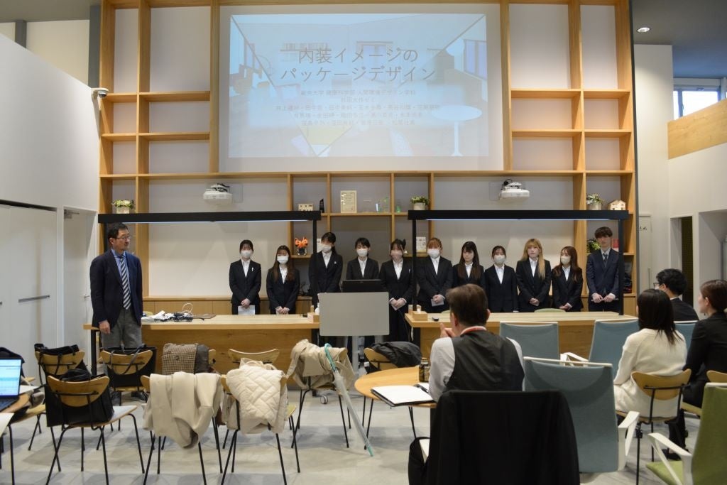 プロジェクトの成果は、社内発表会において、日本中央住販の設計スタッフや役員の前でゼミメンバーの学生たちにより、熱心にプレゼンされました。