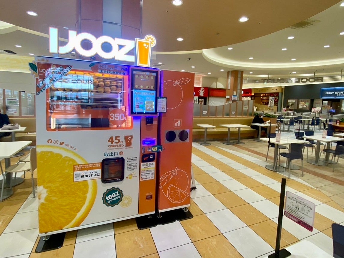 イオンタウン大垣に設置された350円生搾りオレンジ自販機IJOOZ