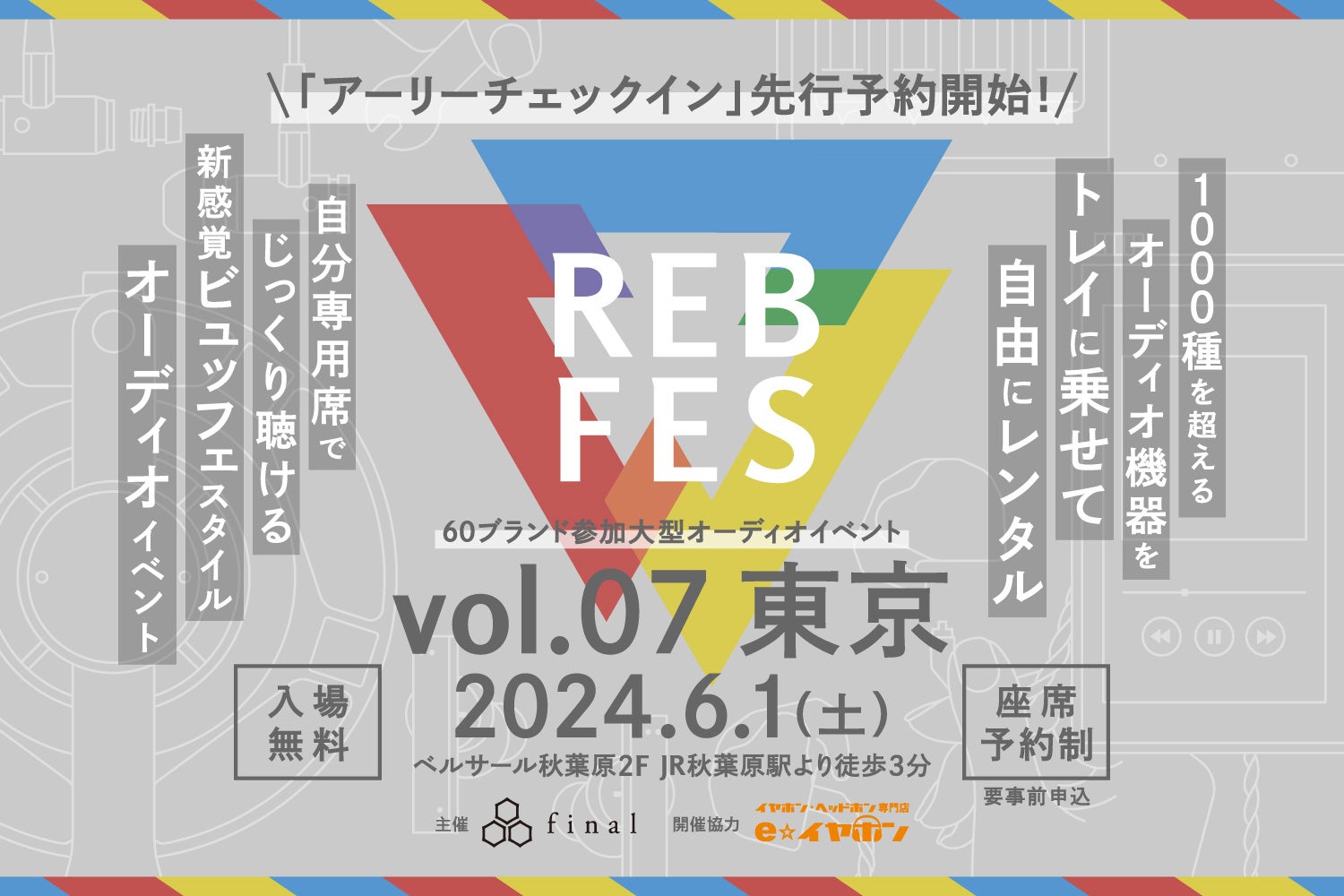 1000種を超えるオーディオ機器を自由に組み合わせて試聴できる新オーディオイベント「REB fes vol.07@東京」。「アーリーチェックイン」枠から座席予約申し込みがスタート!