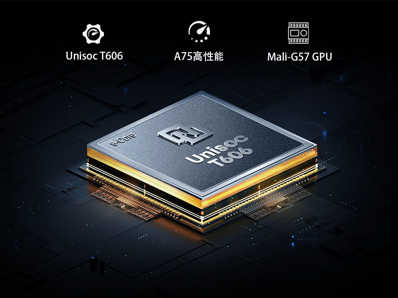 UNISOC T606は、12nmプロセス技術を採用したミッドレンジからハイエンドのモバイル・プロセッサーです。 2つの高性能ARM Cortex-A75コアと、よりエネルギー効率の高い6つのARM Cortex-A55コアで構成されるオクタコアプロセッサです。 この組み合わせは、性能とエネルギー効率の優れたバランスを実現し、激しいタスクを処理しながらデバイスをスムーズに動作させ、日常使用時のバッテリー寿命を節約します。