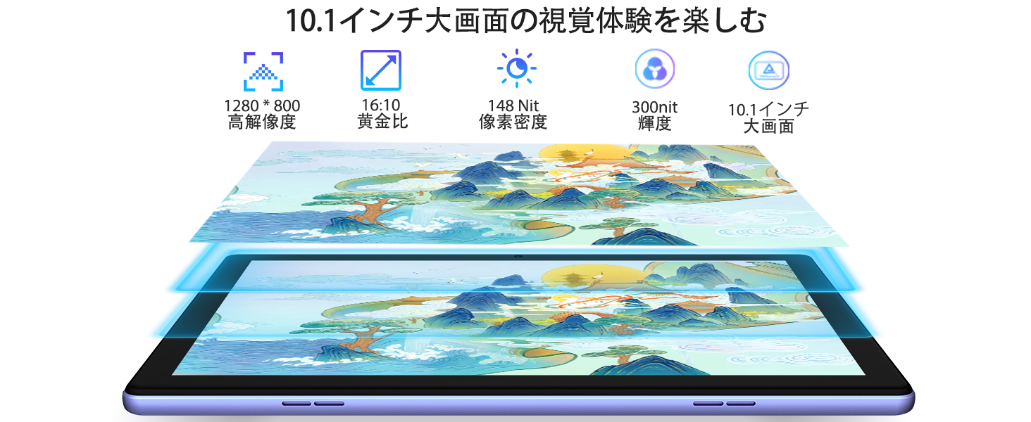 1280 x 800の解像度を持つ10.1インチIPSディスプレイを搭載しており、優れた色再現性と演色性、広い視野角を実現し、作業、動画鑑賞、ゲームに適しています。また、反射を抑えるIn-cellシステムにより、ディスプレイ性能にも十分配慮しており、ゲームやビデオで素晴らしい視覚体験をお約束します。