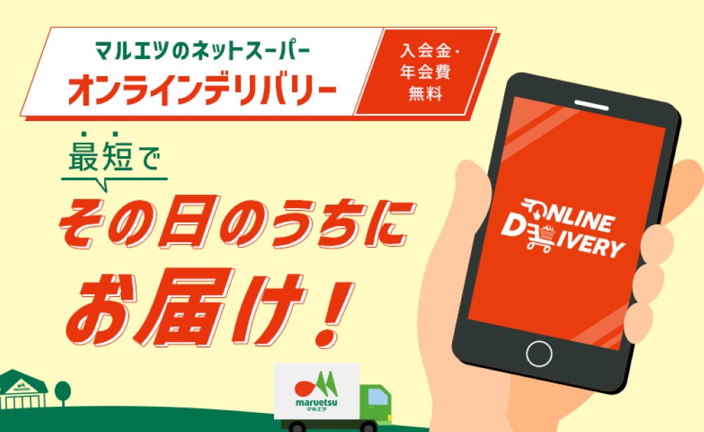 店舗で取り扱う商品をスマートフォンやパソコンでご注文いただき、ご自宅や配送エリア内のご指定先で最短その日のうちにお受け取りいただけます。