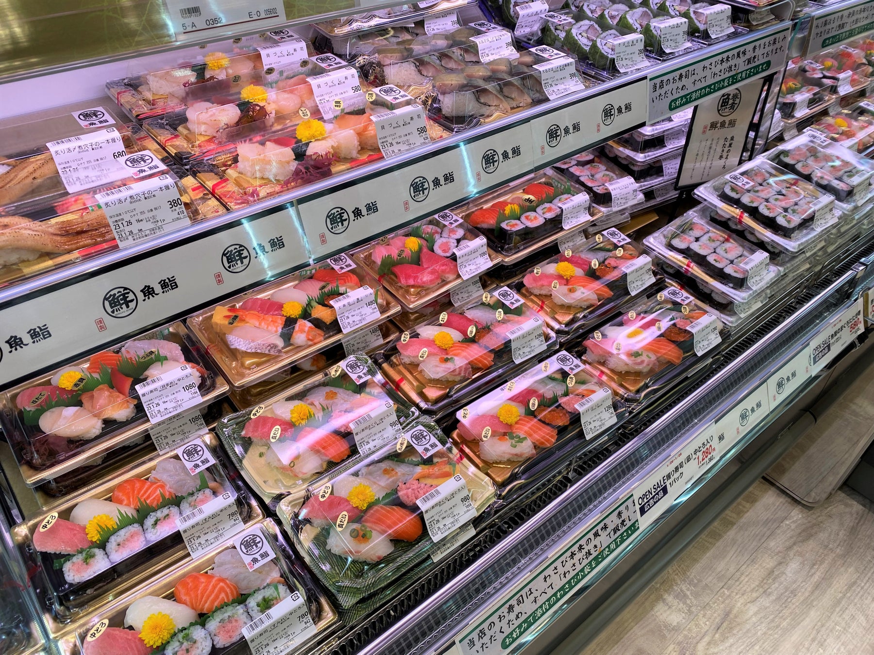 鮮魚では、まぐろやサーモン、お造りの品揃えを強化するとともに、「あんきもポン酢」などの『お魚屋さんのおつまみ』を展開いたします。鮮度や味にこだわった『鮮魚鮨』は、惣菜売場で展開いたします。