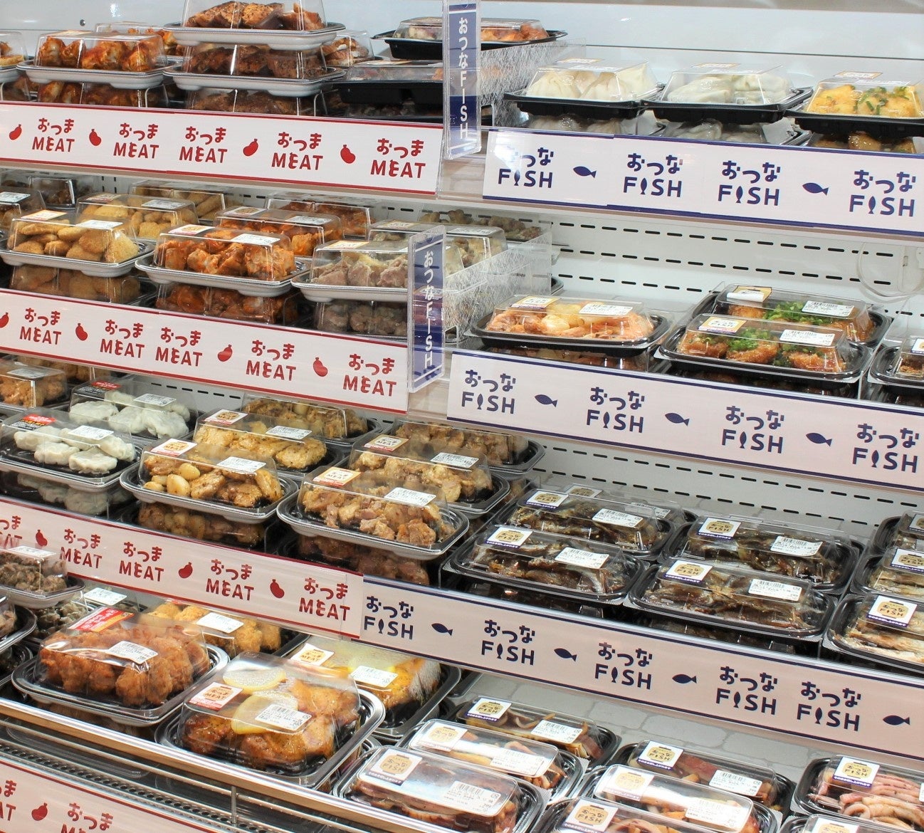 精肉では、ローストビーフ・ローストポークのほか、焼鳥や唐揚げなどの『おつまMEAT』を、鮮魚では、魚のおつまみを集めた『おつなFISH』を品揃えいたします。