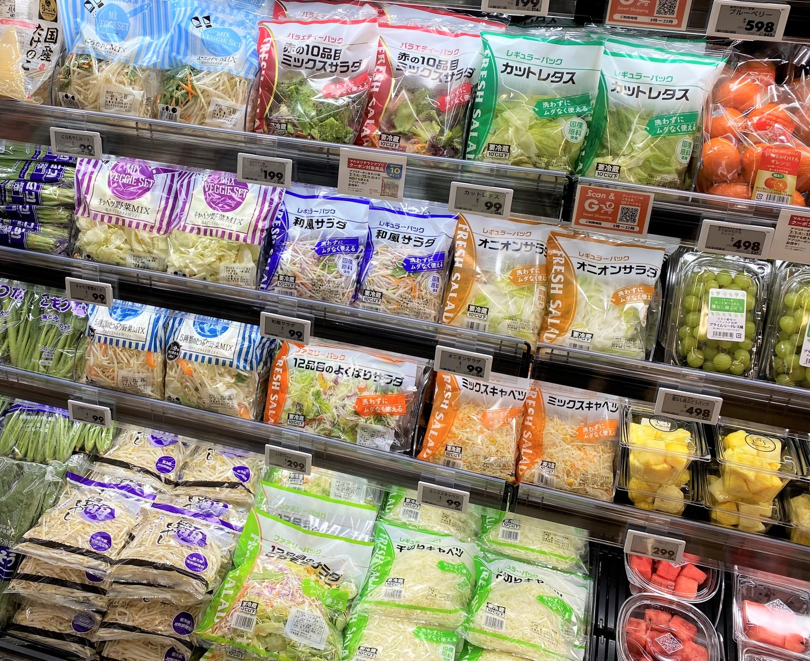 青果では、旬の野菜・果実のほか、カットサラダ・カット野菜、カットフルーツなどの簡便商品や、使い切れる適量目商品を品揃えいたします。