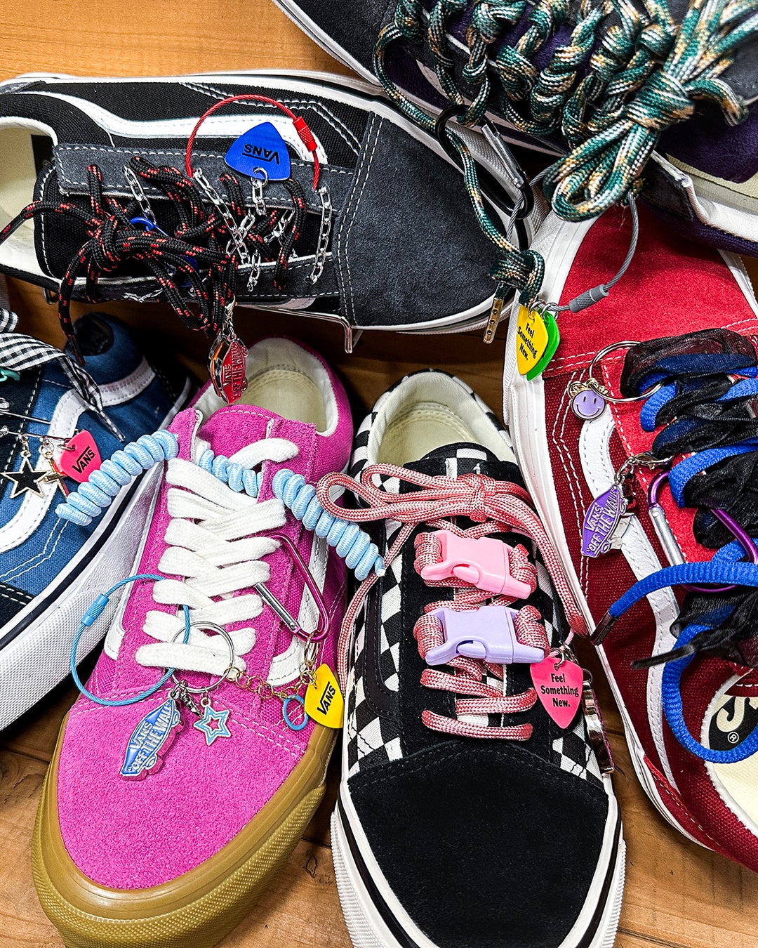 VANSロゴチャーム、オリジナルシューレースなど、カスタマイズパーツを用いて、あなただけのOLD SKOOLを創り上げることができます。