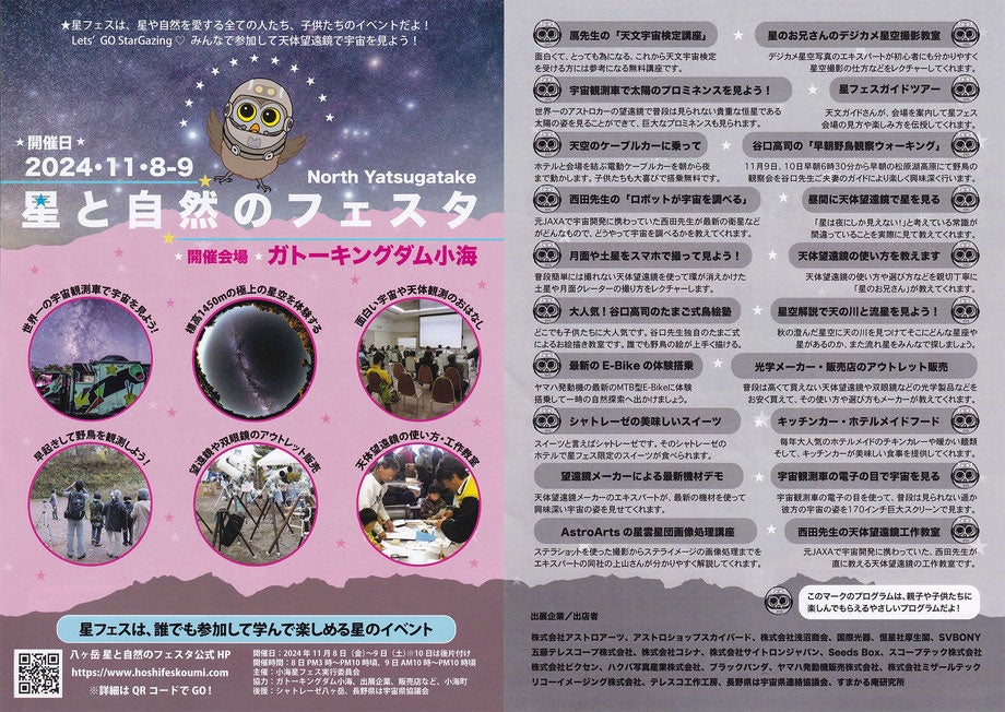 総合光学機器メーカー株式会社ビクセン(本社:埼玉県所沢市、代表取締役:新妻和重)は、長野県小海町にある「ガトーキングダム小海(旧 小海リエックスホテル)」にて、2024年11月8日(金)、9日(土)に行われるイベント「八ヶ岳 星と自然のフェスタ」に出店します。