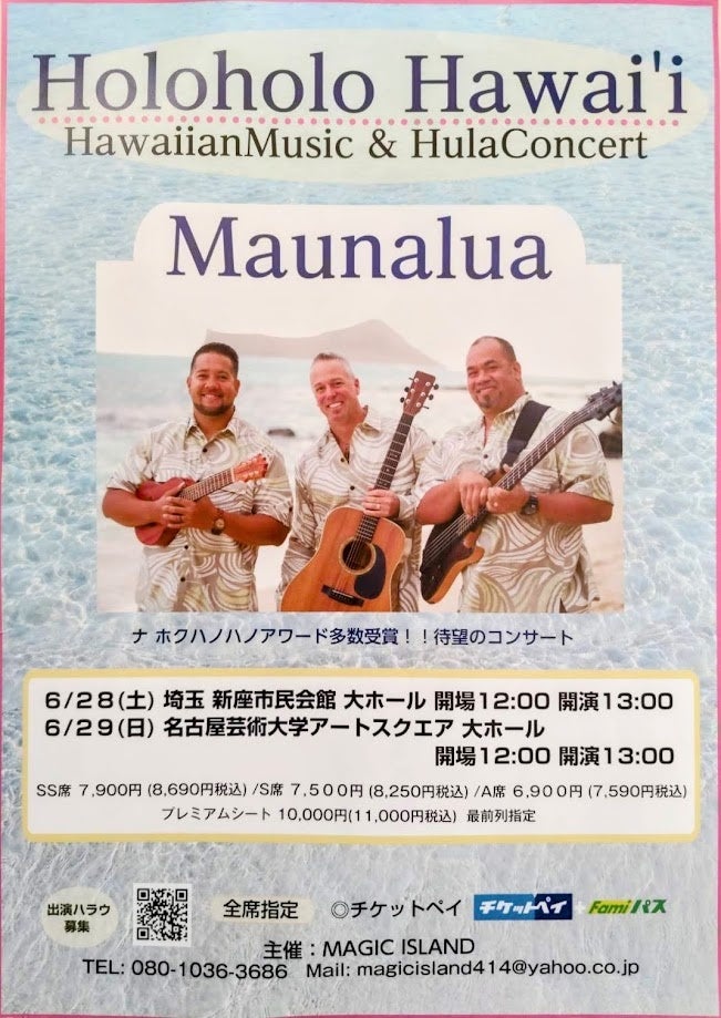 『Holoholo Hawai'i Hawaiianmusic & Hulaconcert <Maunalua>』を2025年6月28日(土)、29日(日)に開催決定!「チケットペイ」にて販売開始!