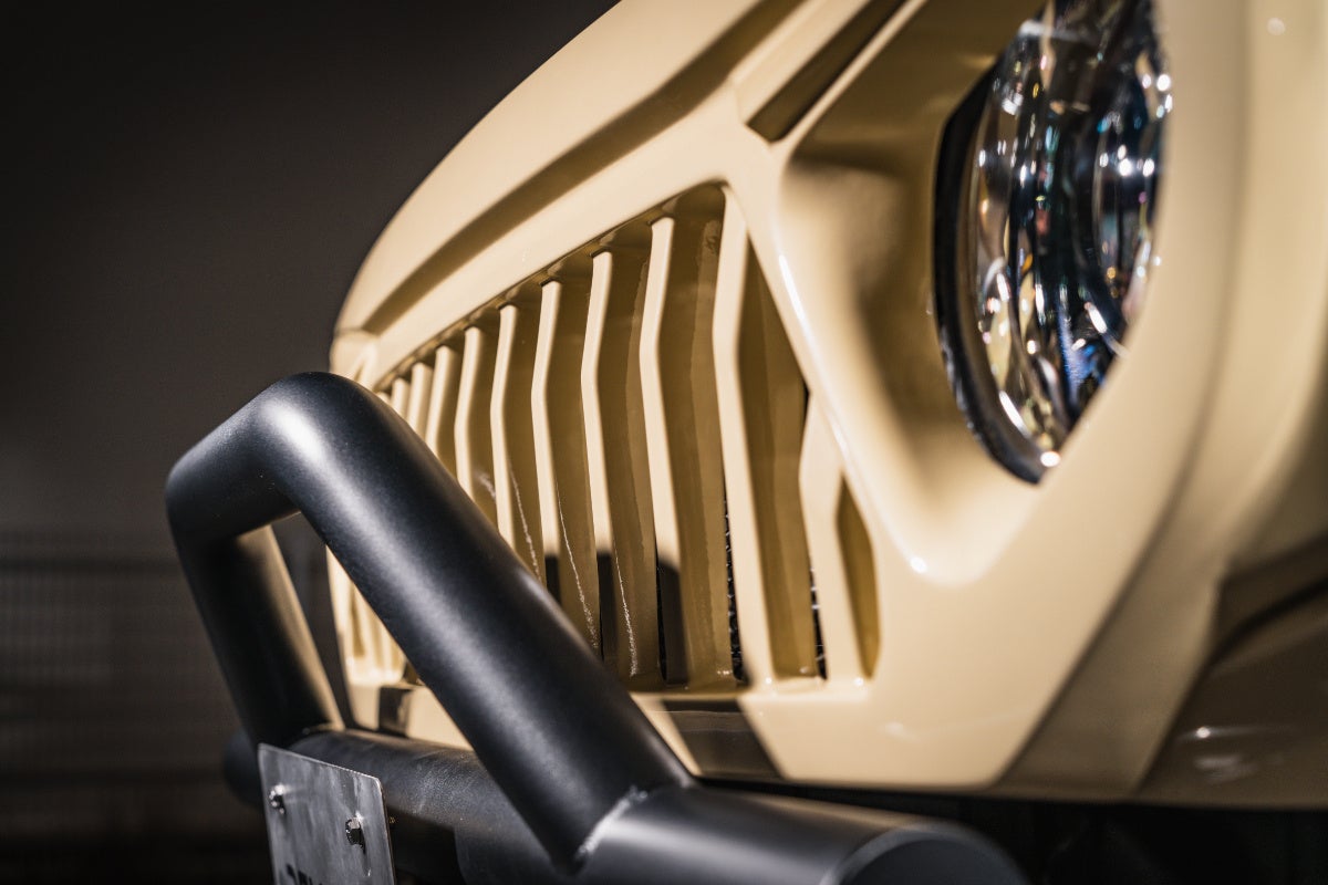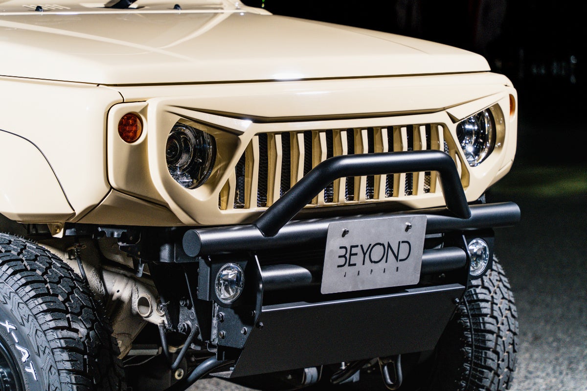 ビヨンドジャパンの「ソルジャーフェイスグリル」による迫力のあるフロントフェイスが存在感を演出。街中やアウトドアでも注目を集めること間違いなし。