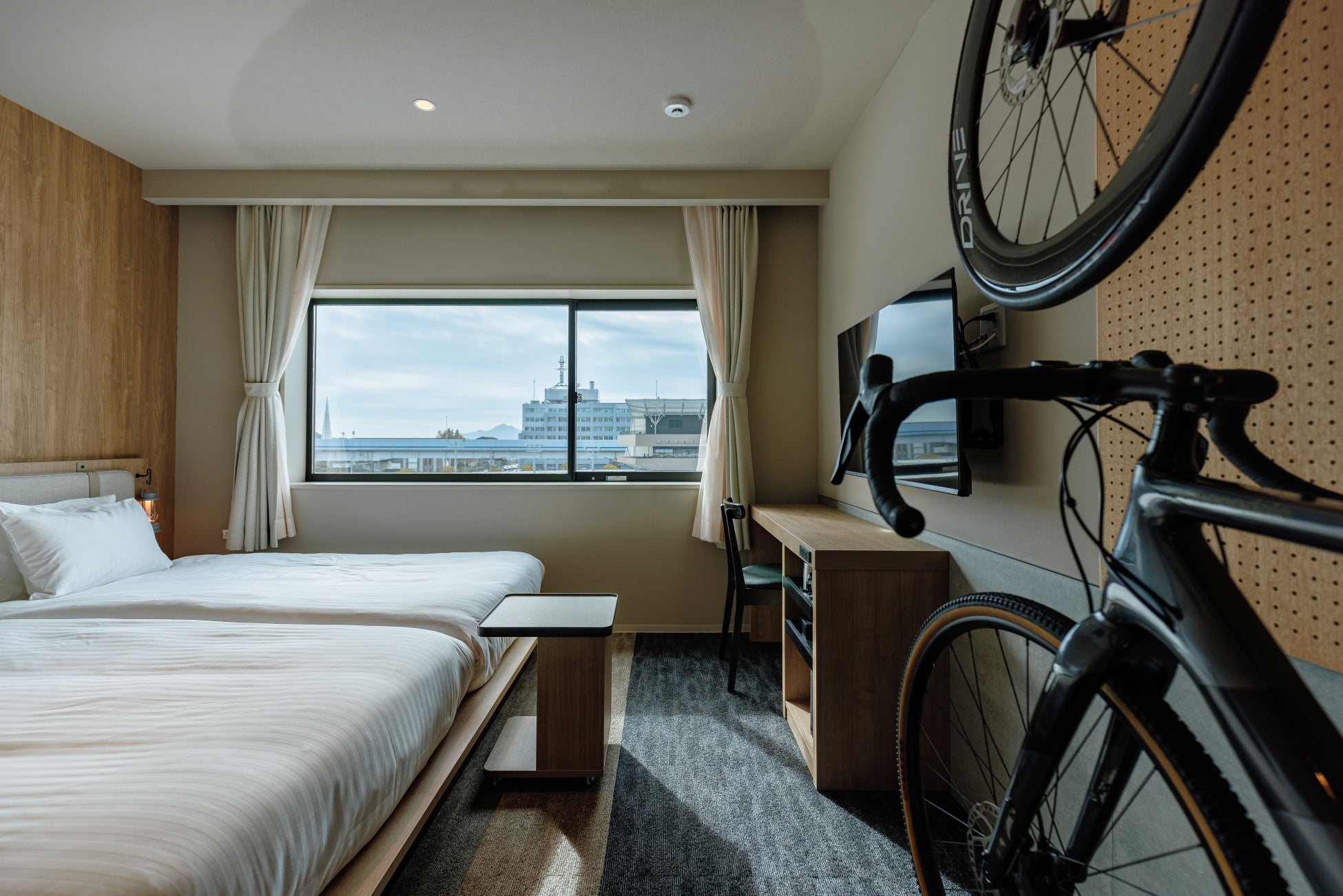 本ホテルは、競輪とアーバンサイクルスポーツが融合する複合施設「アーバンサイクルパークス広島」内に開業する、サイクリストフレンドリーなホテルです。プロサイクルロードレースチーム「ヴィクトワール広島」の運営によるバイクショップをはじめ、サウナ付き大浴場、カフェレストランなどを併設し、滞在・スポーツ・観戦・交流を一体で楽しめる拠点として整備されています。