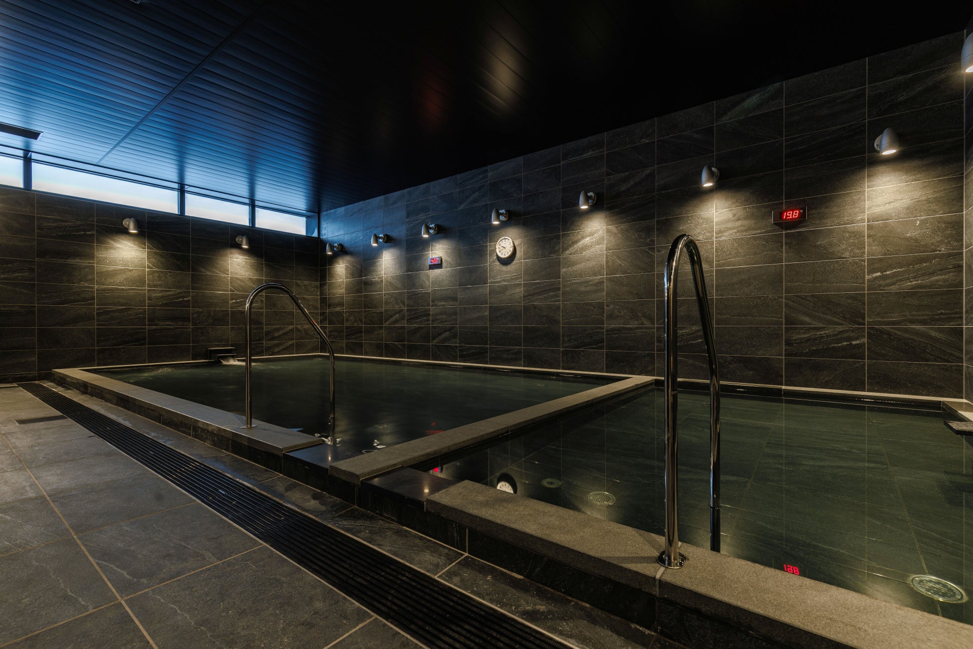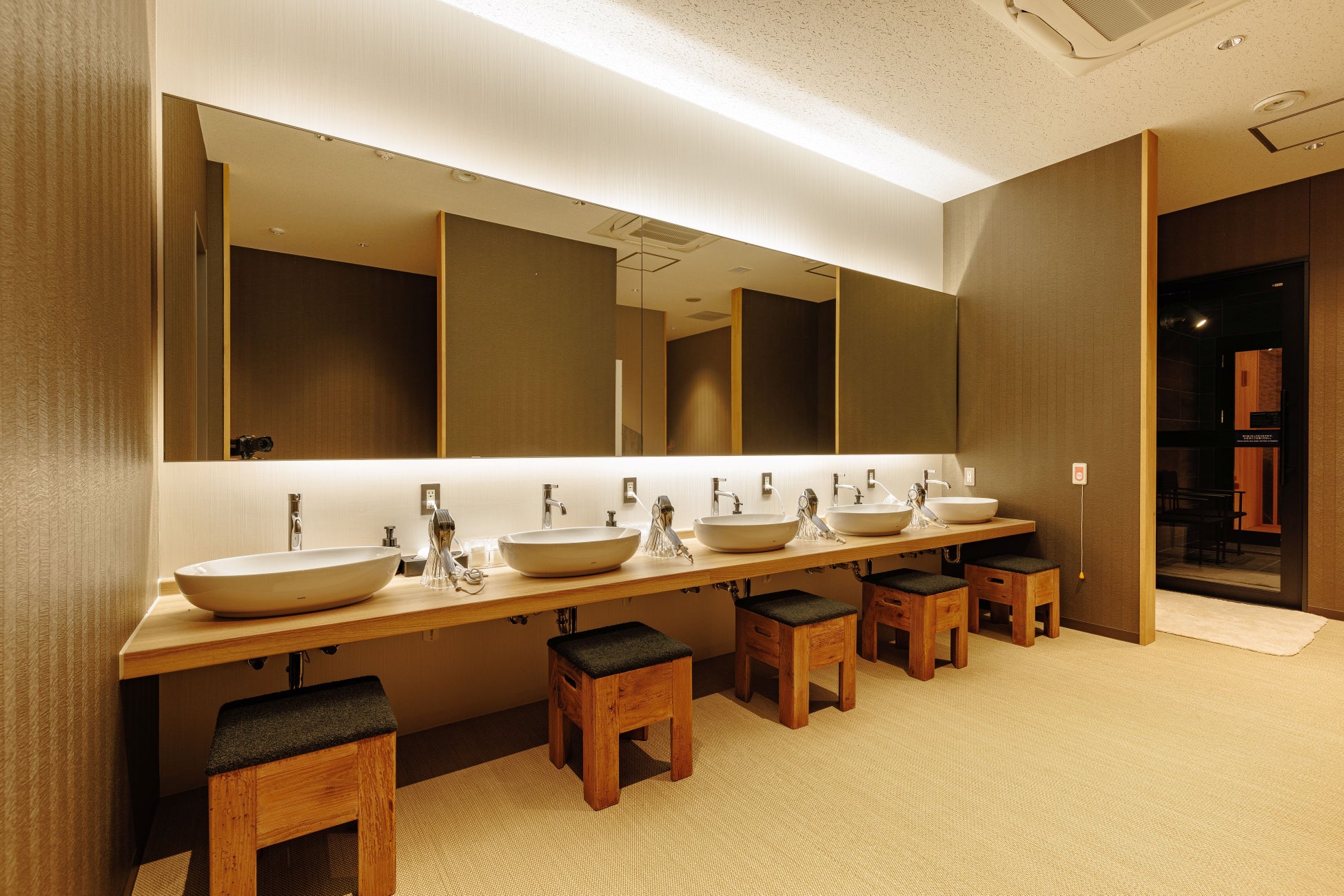 疲れた体をゆっくりほぐし、心も身体もととのえる大浴場。サウナと水風呂を完備。サウナは自動ロウリュウを導入しており高温スチームをお楽しみいただけます。シャワーヘッドとヘアドライヤーは男女ともにReFa製品を採用。