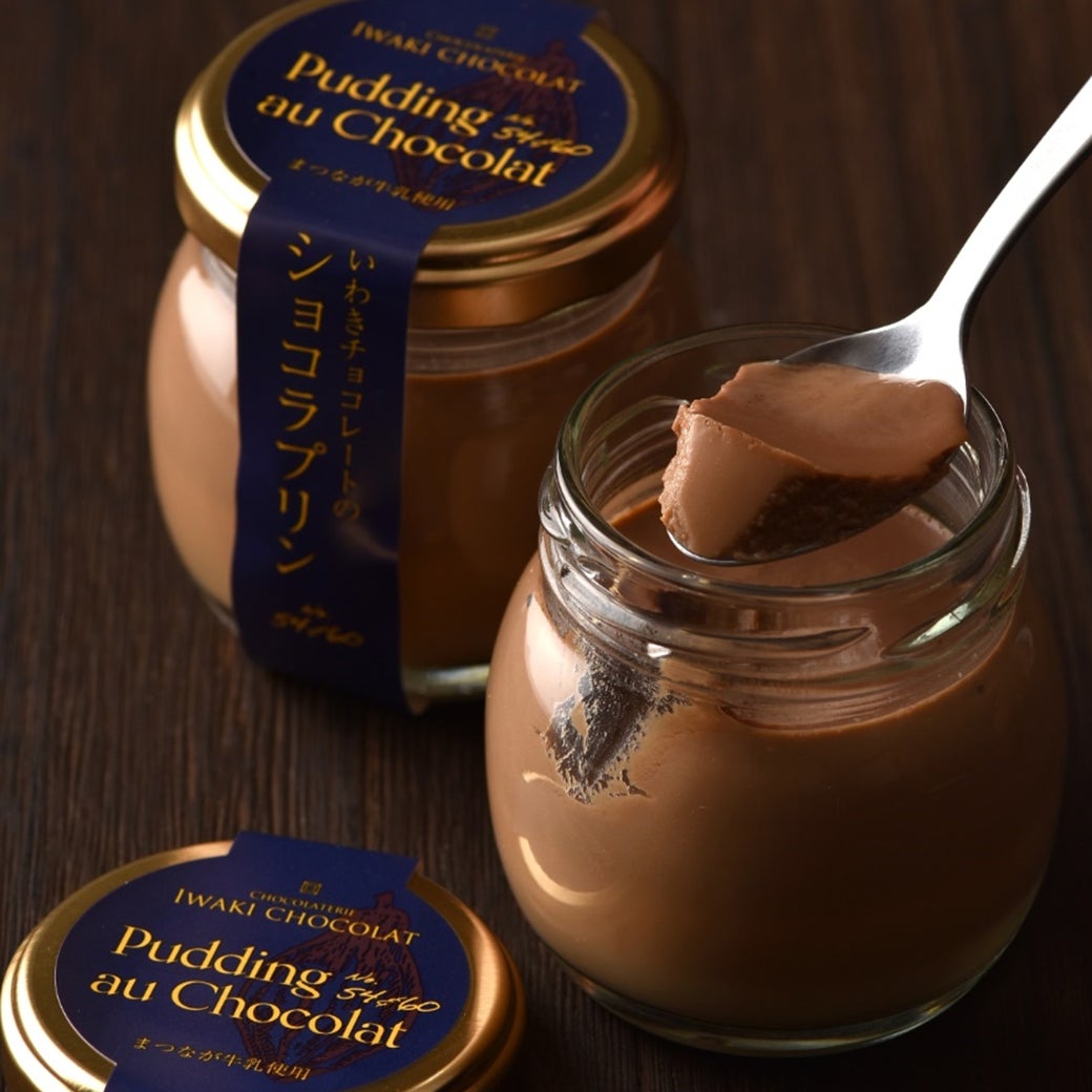 いわきチョコレートの代表的スイーツ「めひかり塩チョコ」に使われるチョコレートを使用したショコラプリンです。レトルト専門の工場いわき遠野らぱんが、プリン専用にチョコレートNo54(カカオ54%クーベルチュール)とNo60(カカオ60%クーベルチュール)を黄金比にて製造しました。卵の濃厚さも感じながらも、しっかりとしたチョコレートの風味と旨味があります。