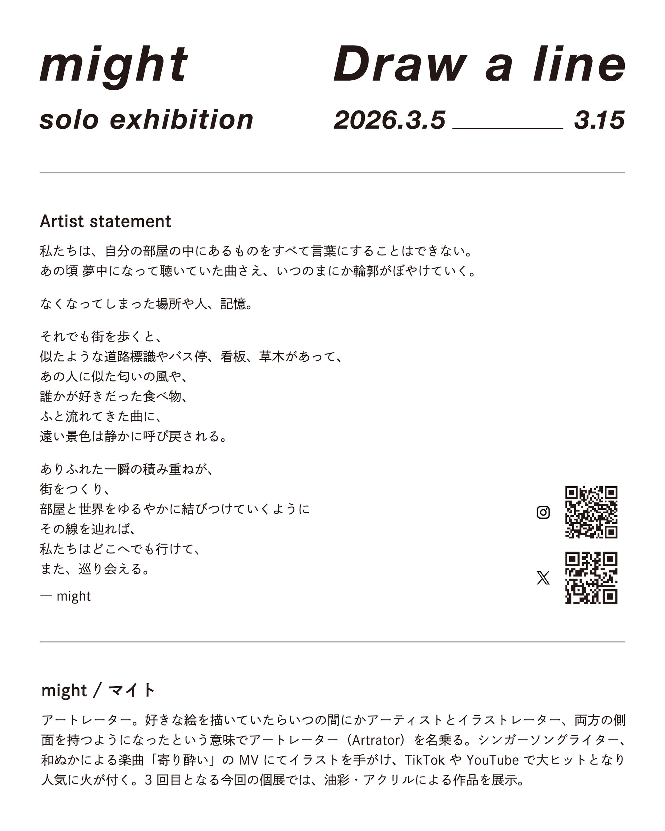 tHE GALLERY OMOTESANDOにて、3月5日 (木)より、might 個展「Draw a line」を開催。