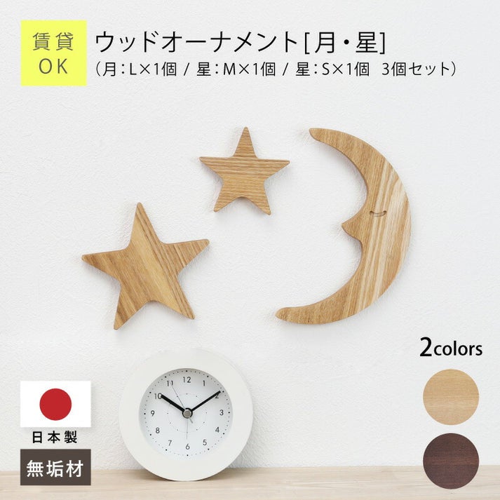 ウッドオーナメント-月・星-
