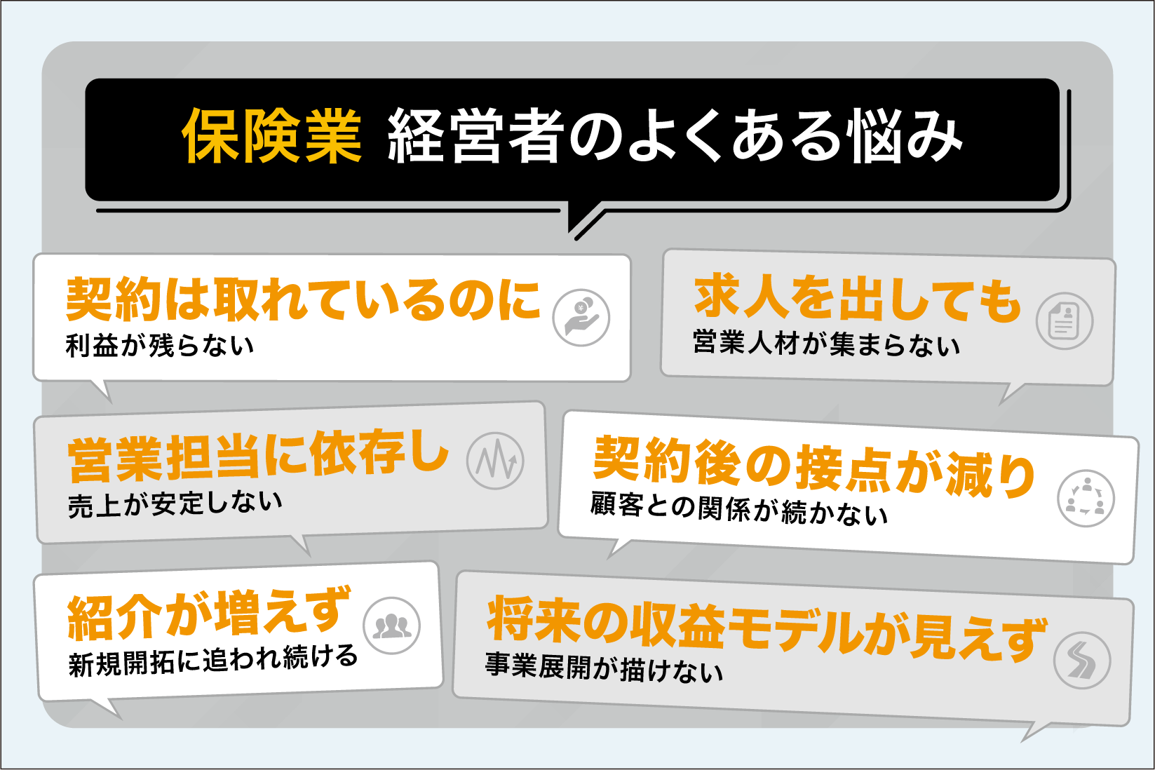 本サービスは、保険代理店において属人化しやすい営業・顧客管理・経営判断を整理し、