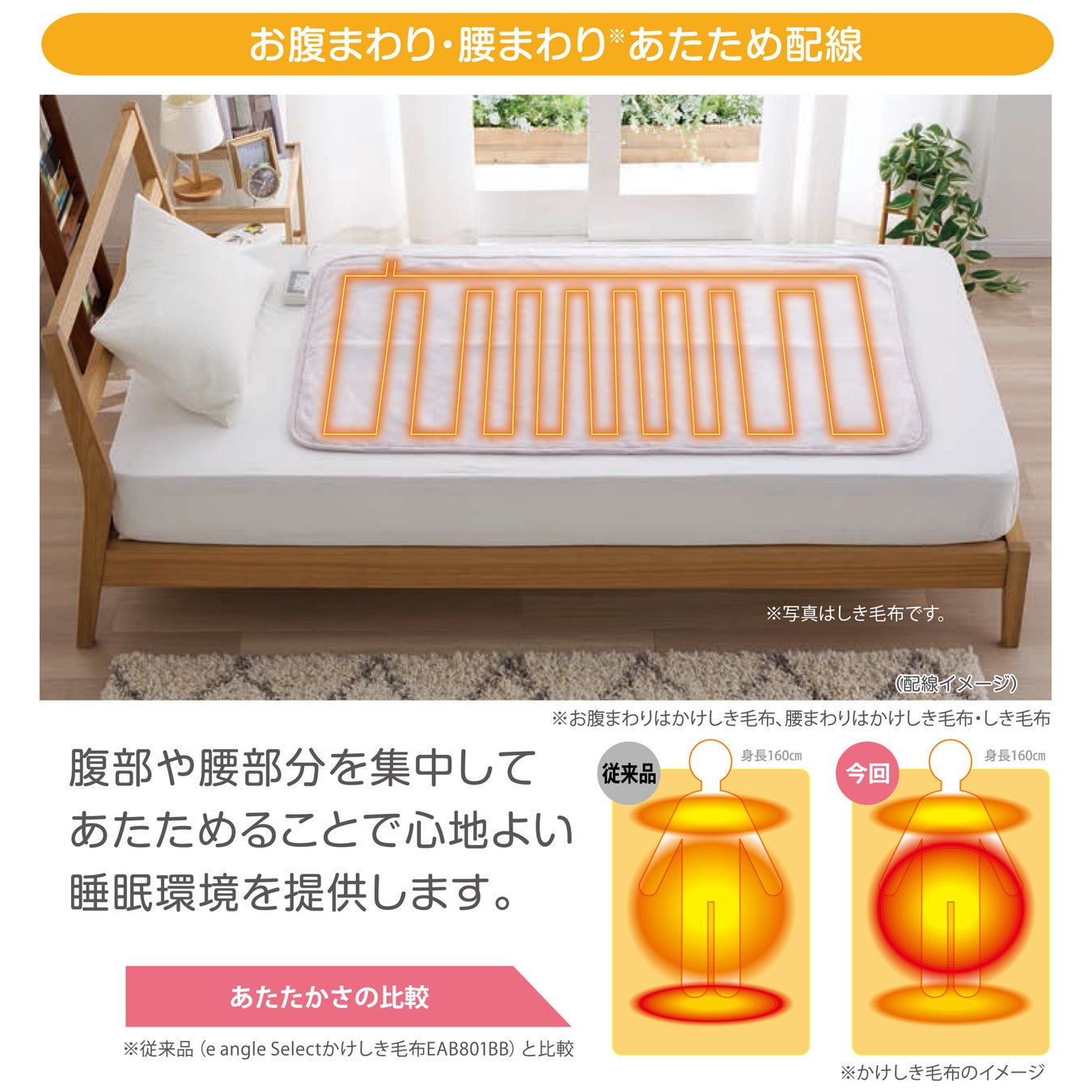 e angle 「お腹まわり・腰まわり あたため配線」を採用した電気毛布が登場!