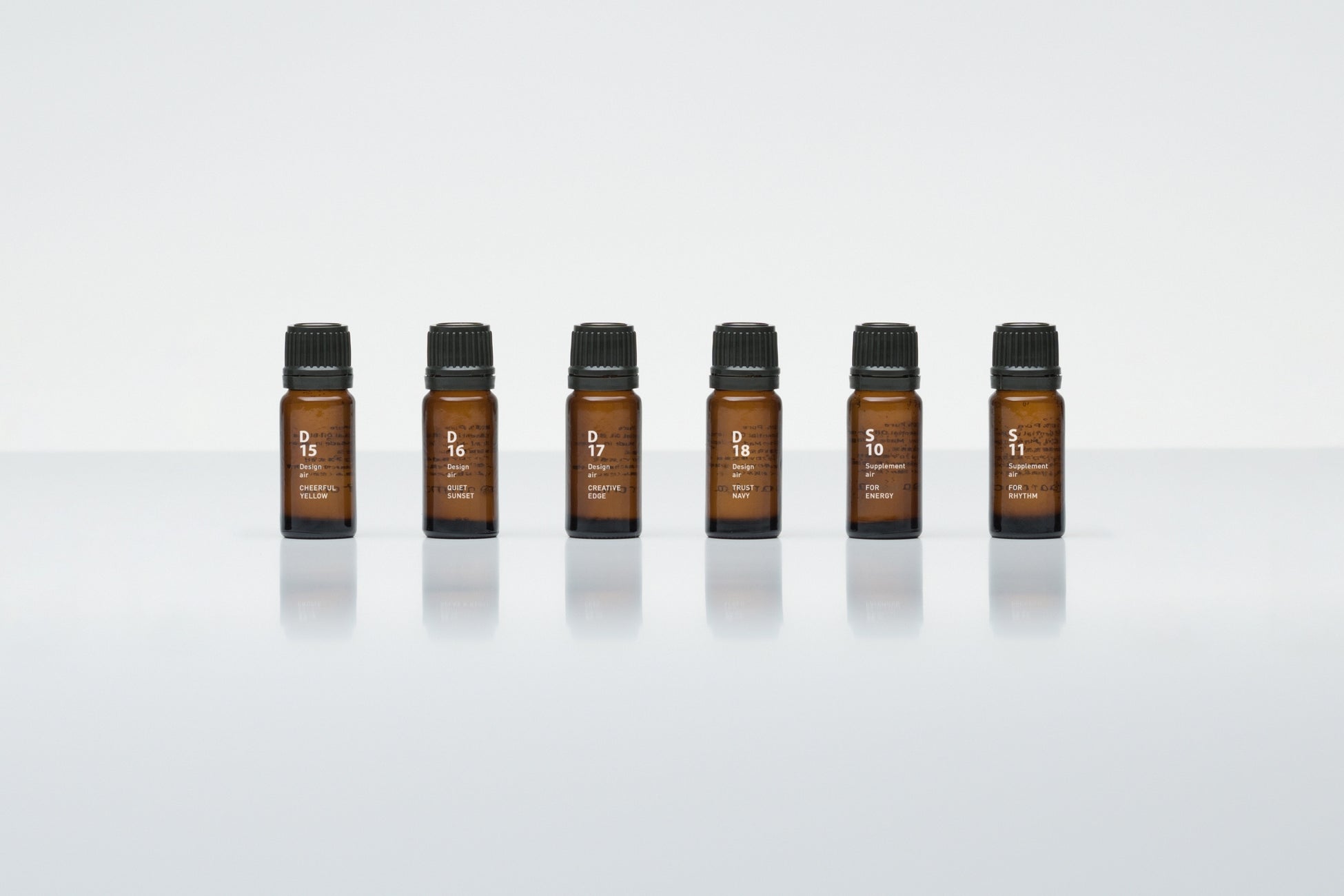 6種の香りは、シーンや気分にフィットする個性的な香りをラインアップした「デザインエアー」シリーズに4種類、心と体に効くサプリメントのような機能をそなえた「サプリメントエアー」シリーズに2種類が追加されます。