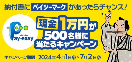 「納付書にペイジーマークがあったらチャンス!現金1万円が500名様に当たるキャンペーン」本日、4/1より開始!