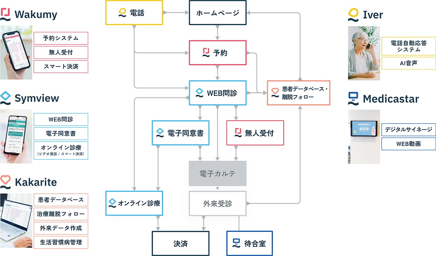 患者の受診動線を、レイヤードのプロダクトでトータルに対応することができます。