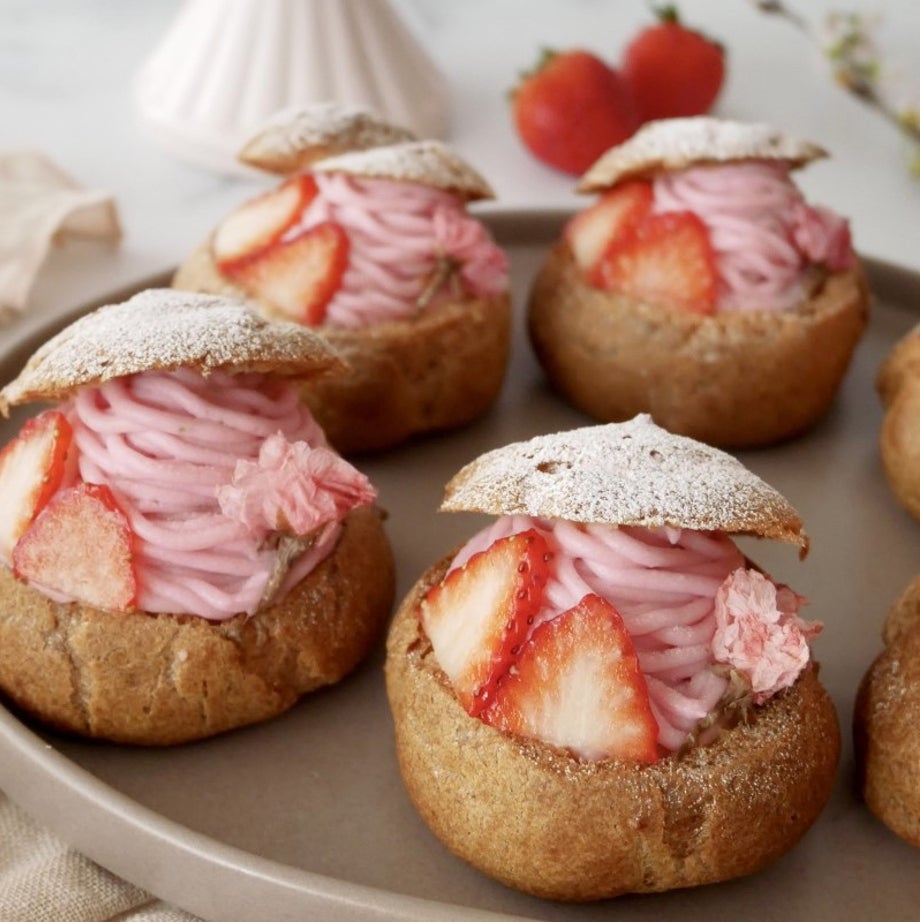 ■レシピ名:ホケミで簡単♪桜のモンブランシュークリーム