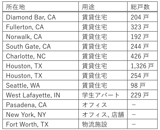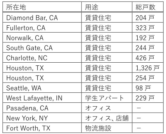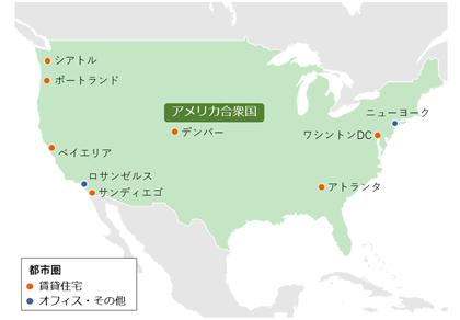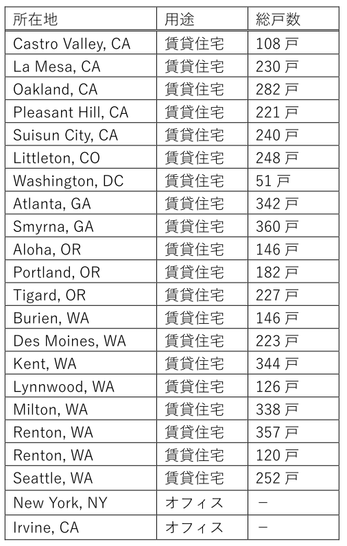 当社は2012年にTLUSを設立し、ロサンゼルス・ニューヨークを拠点として、本リリース時点で米国全土で計20件・4,543戸の賃貸住宅、計2件・約70千㎡のオフィス賃貸事業に参画しています。今後も米国内での投資を積極的に進めていく方針です。