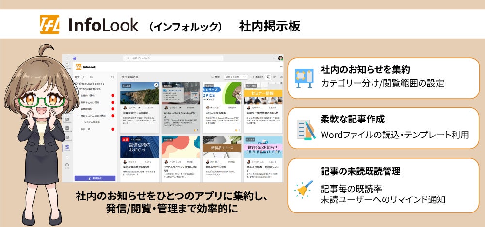 社内ニュースの一斉配信や既読管理をTeams上で。社内情報共有を革新する掲示板アプリ「InfoLook」のニュース投稿・通知機能強化版をリリース
