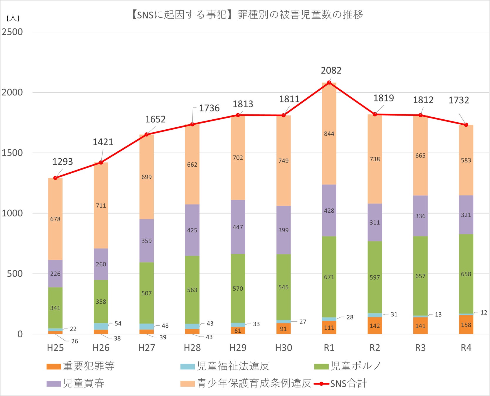 SNSに起因する事犯の被害児童数(警視庁のデータをもとにチャイルド・ファンド・ジャパンでグラフ作成)