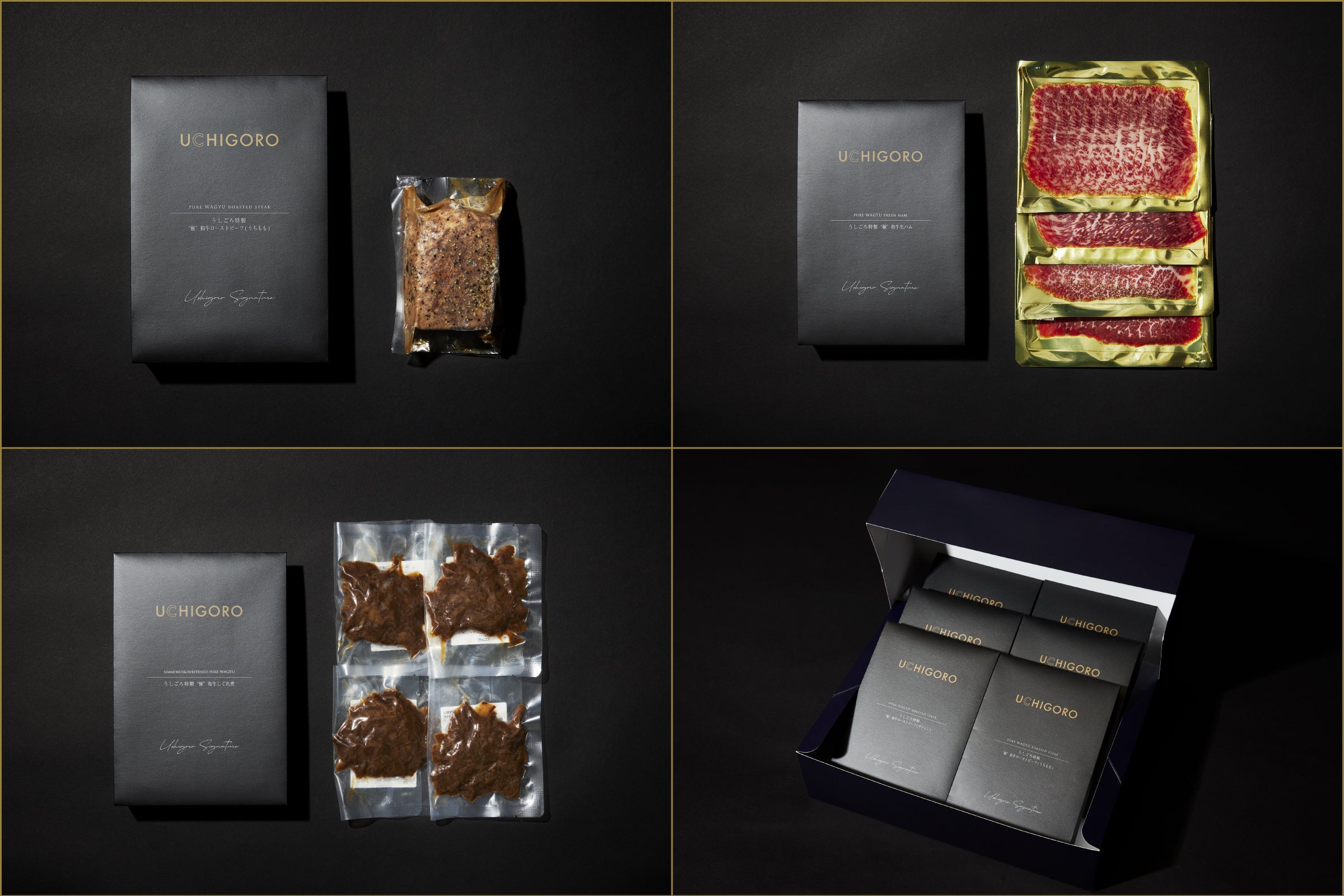 黒を基調に洗練されたパッケージは、誕生日などのお祝いや季節の贈り物にも最適です。シンプルでありながら工夫を凝らし、「うしごろ」だからこその驚きと感動をプラスした、焼肉屋が提案する“肉料理の定番”をご堪能いただけます。