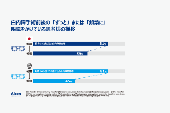 国内外で、白内障手術後「ずっと」または「頻繁に」眼鏡をかけている患者様は減少する結果に