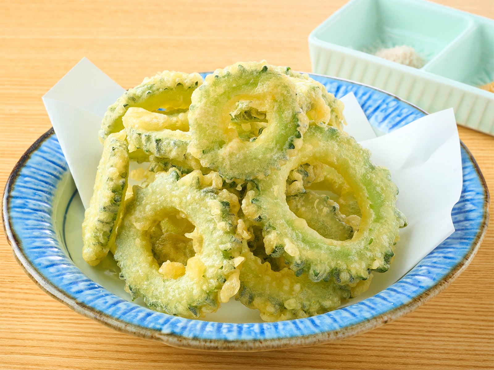 ゴーヤのほろ苦い風味がクセになる!揚げたてサクサク♪(藻塩・カレー塩)