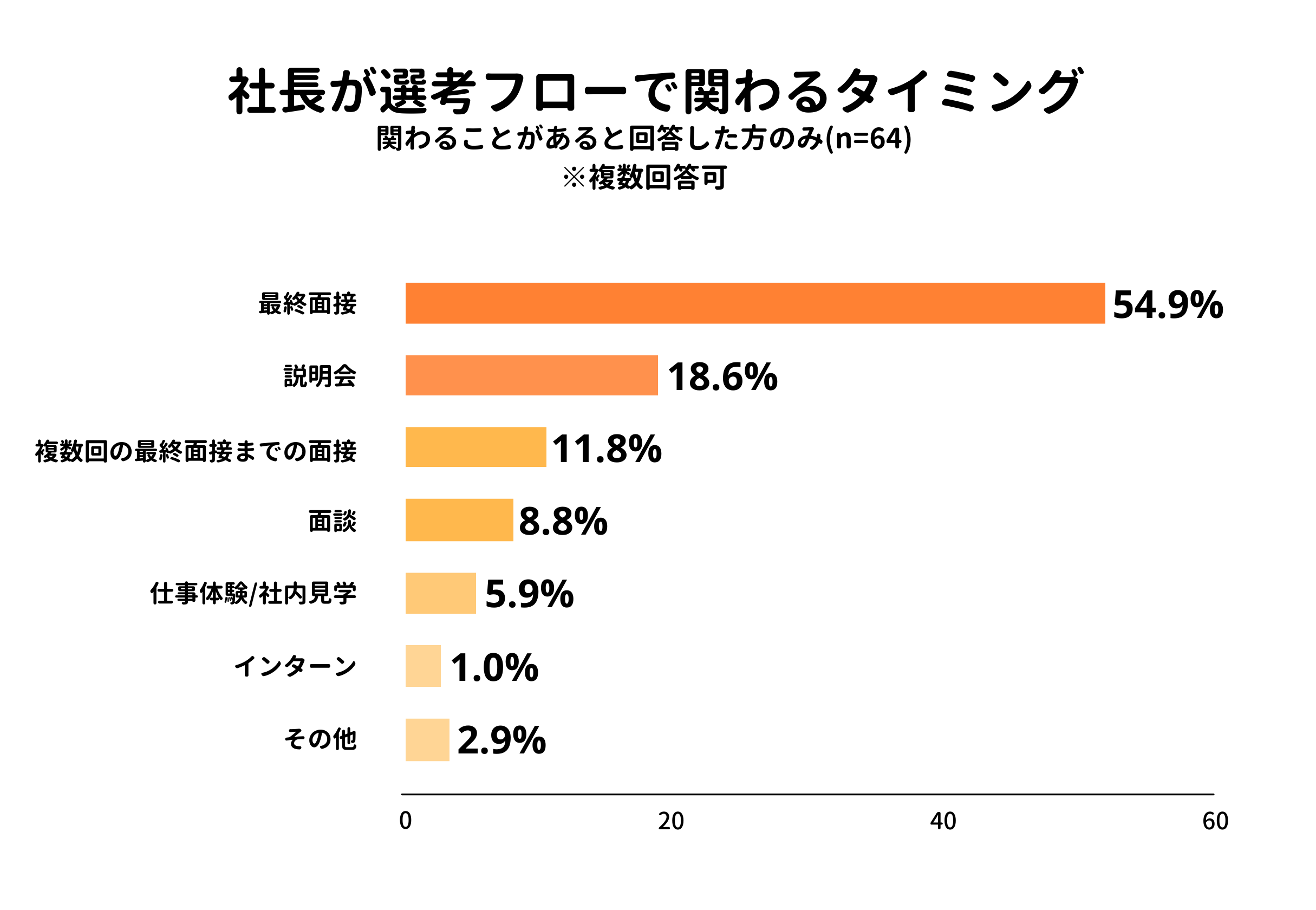 ■社長が選考フローで関わるタイミングは「最終面接」(54.9%)が最多