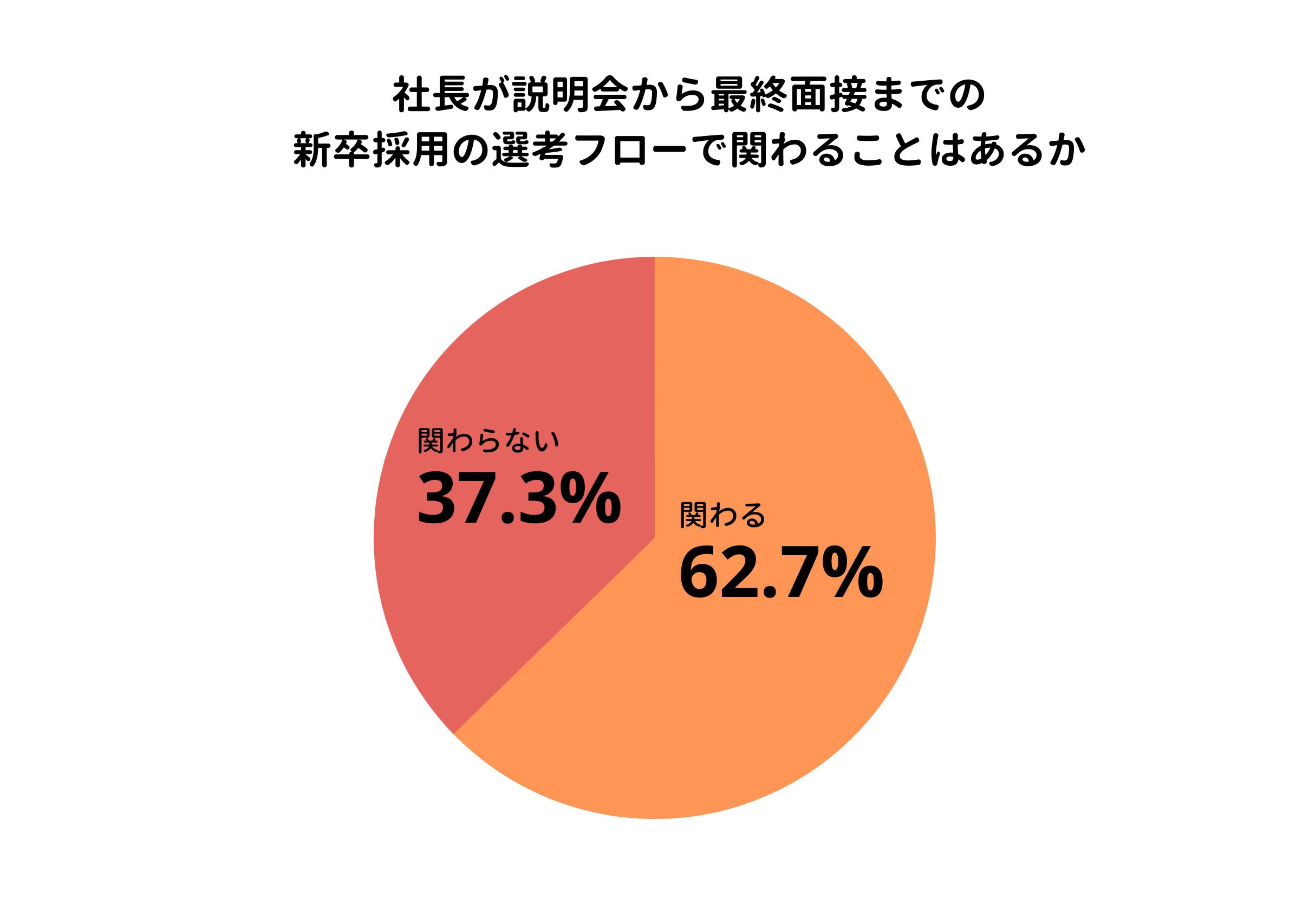 - 62.7%が新卒採用の選考フローに社長が「関わる」