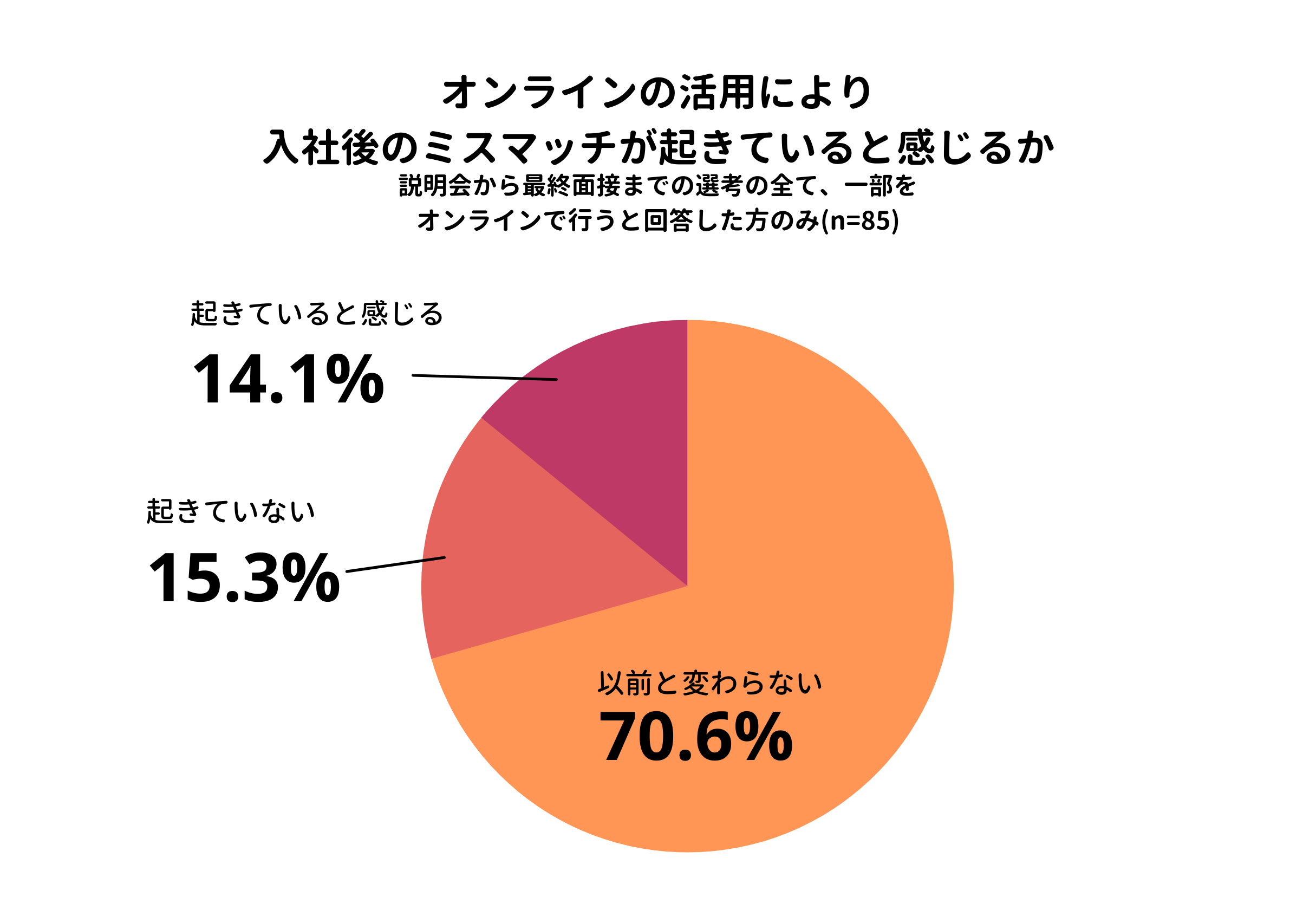 ■オンラインの活用をしても、入社後のミスマッチは70.6%が「以前と変わらない」と回答