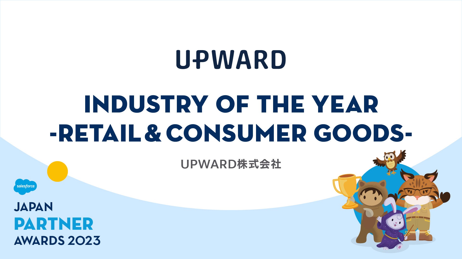 「現場のラストワンマイルを革新する」をミッションに掲げるUPWARD株式会社(所在地:東京都港区、代表取締役社長 CEO:金木 竜介、URL: https://upward.jp)は、2023年4月13日、Salesforce Japan Partner Award 2023 における「Growth部門 インダストリー部門 Industry of the Year Retail & Consumer Goodsアワード」を受賞しました。 2022年度の協業実績における、ビジネス規模、ビジネス成長率を総合的に判断し、特に秀でた実績を残したということを背景に、この度選出いただきました。