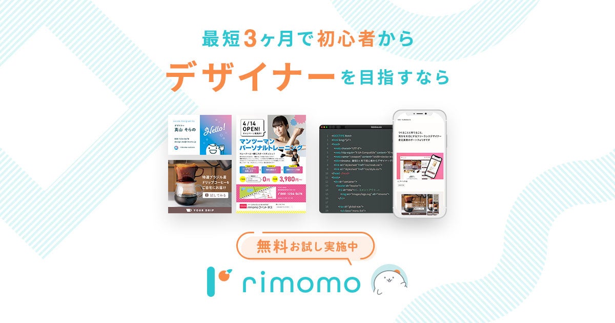 この春からWEBデザインを学ぼう!今だけAmazonギフト券5,000円分プレゼントキャンペーン実施中。最短3ヶ月でデザイナーを目指すならrimomo!