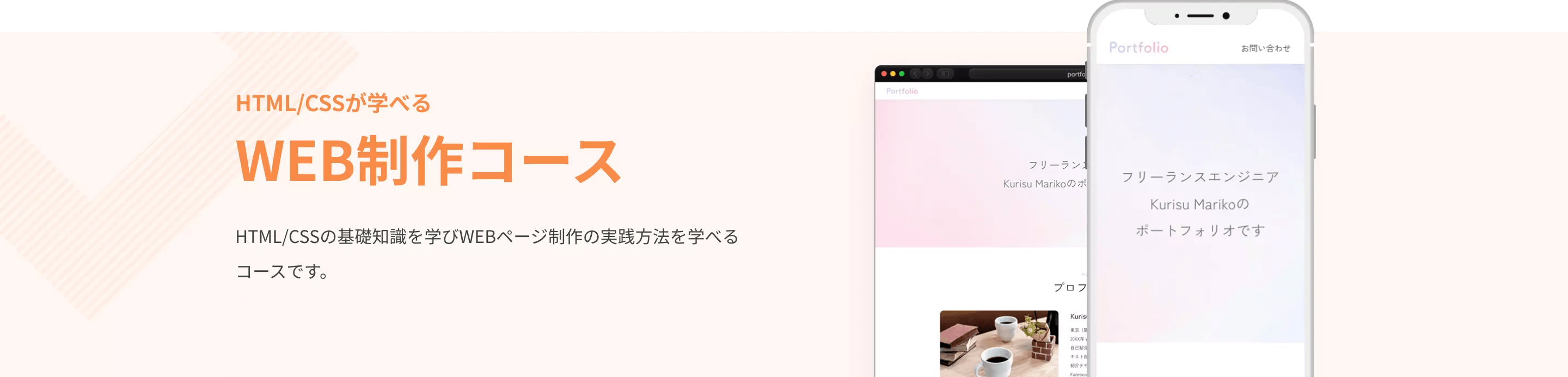 WEBデザインコース:デザインソフトの使い方からWEBバナー・チラシ・名刺・WEBサイトの制作等の実践知識まで幅広く学べるコースです。また、WEBデザインコースでは第一線で活躍するプロがあなたの作品を丁寧に添削します!
