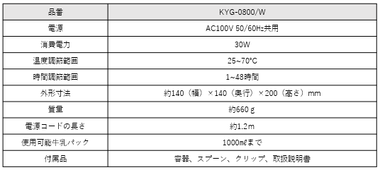 理美容器具などの自社商品の企画・開発と、国内外のメーカーブランド商品を取扱い、販売する代理店業を展開する小泉成器株式会社(本社:大阪市中央区備後町、代表取締役社長:田中裕二)は、簡単ワンタッチで自分好みのヨーグルトを作れる『ヨーグルトメーカー(KYG-0800/W)』の販売を開始しましたので、お知らせします。