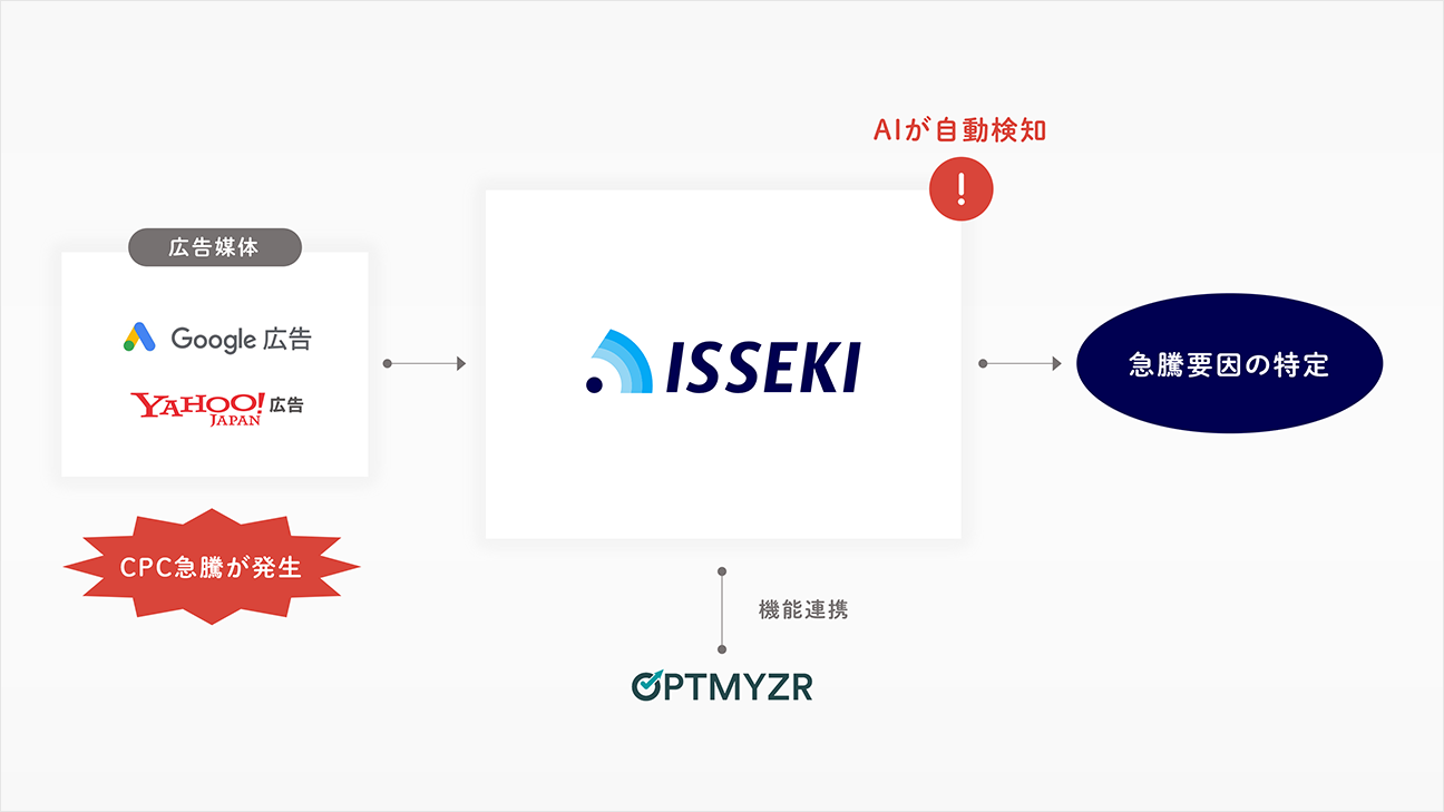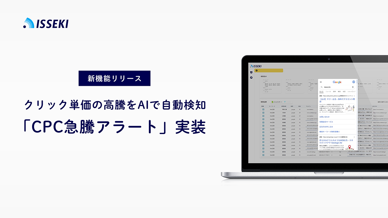 広告不正出稿検知ツール「ISSEKI」、クリック単価の急騰をAIで自動検知する新機能「CPC急騰アラート」を実装。