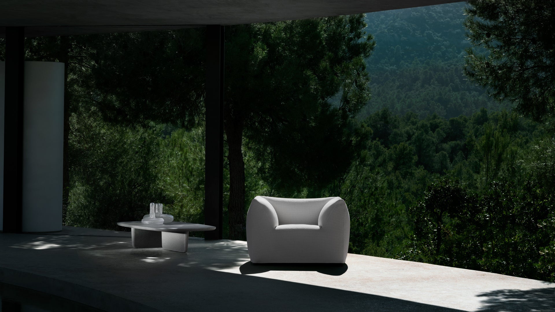 1972年に発表され、1979年にはコンパッソ・ドーロ賞を受賞した<Le Bambole (レ バンボレ)>コレクションに屋外仕様のアームチェア<La Bambola Outdoor (ラ バンボラ アウトドア)>が加わりました。柔らかな曲線と包み込むような形状はそのまま受け継がれ、アウトドア空間においてもアイコニックなアイテムとして存在感を放ちます。