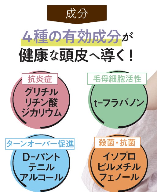 頭皮環境を整えるための成分がバランスよく配合。殺菌成分でベタつきやフケ改善にも期待できます。保湿力も高いので乾燥にも効果的! 髪の毛につきにくく、頭皮にしっかり塗れる使用感も好評でした。