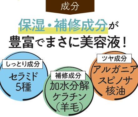 洗浄成分に髪の類似成分である2種のポリペプチドを配合。セラミドなど美容成分も豊富で文句のつけどころナシ!