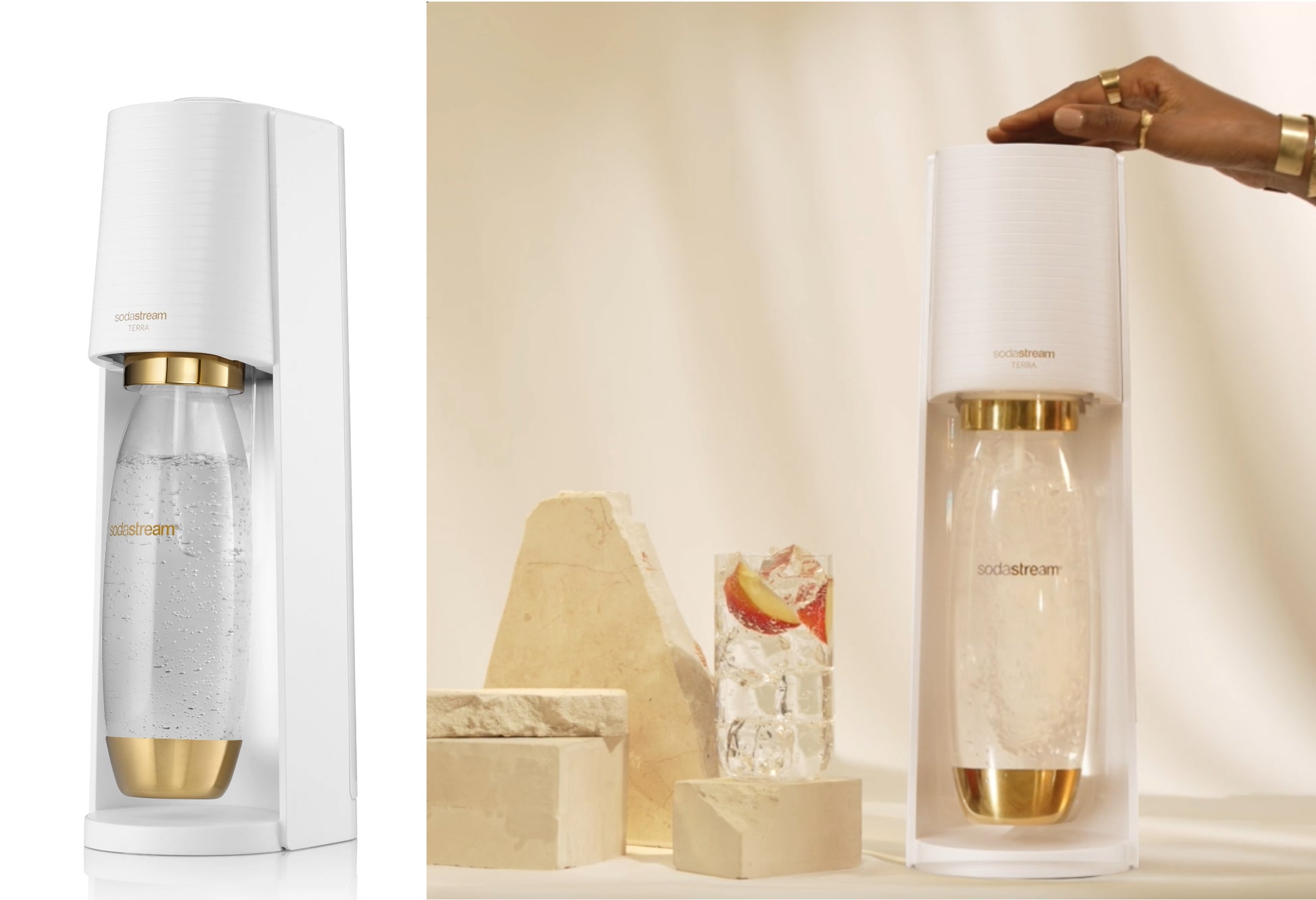 スリムでスタイリッシュなデザインが人気のモデルから“ソーダストリームTERRA(テラ)ゴールド”が限定発売~ホワイト×ゴールドでホリデーシーズンを華やかに~
