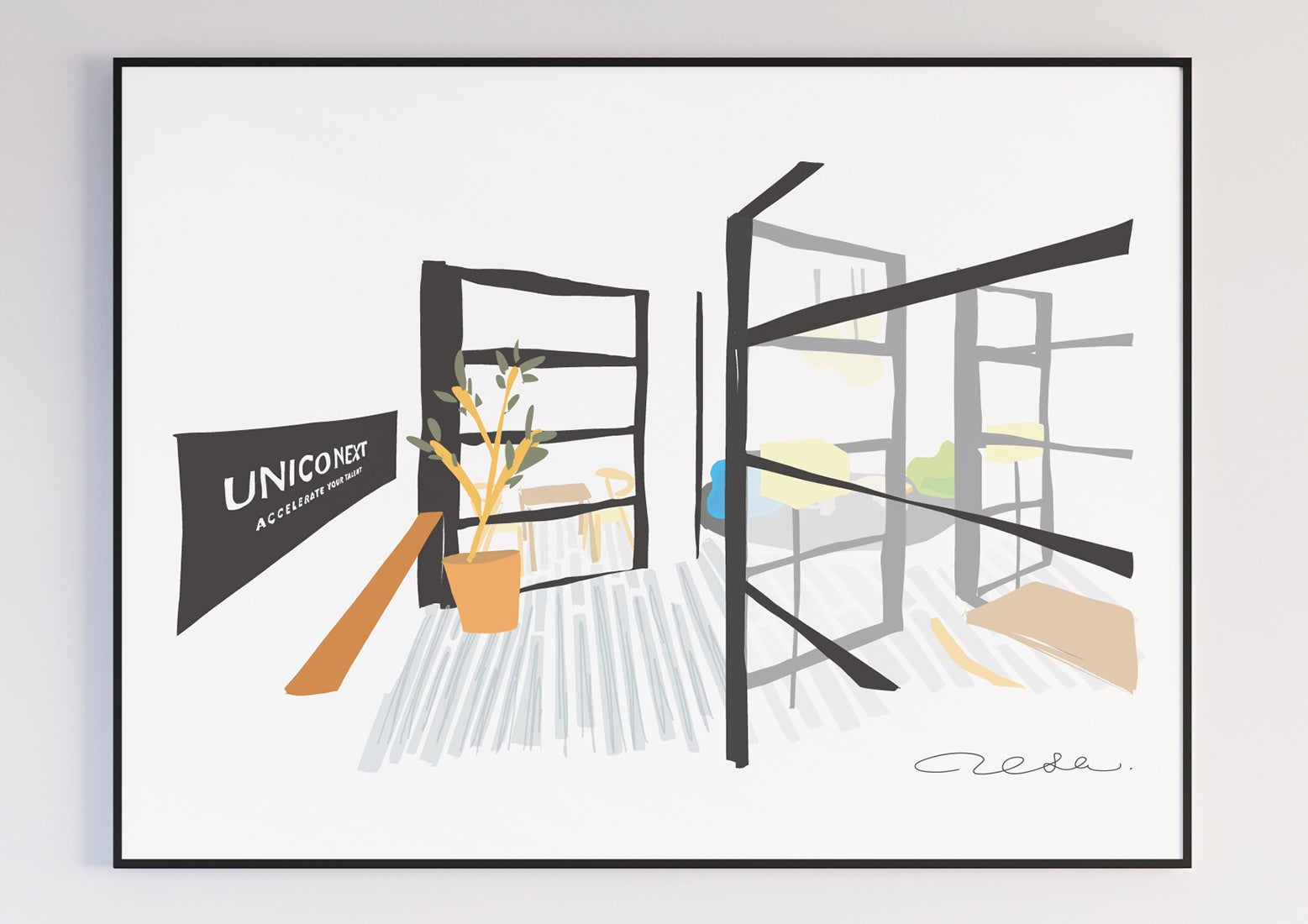 今回入選頂いた「UNICO NEXT」の内装デザインは、そんなunicoの想いに共感頂き、深いご理解のもとで丁寧にデザインに反映いただける方として、以前よりご縁のあった下總良則様に、初期段階の設計からアート・ディレクション全般をご依頼いたしました。
