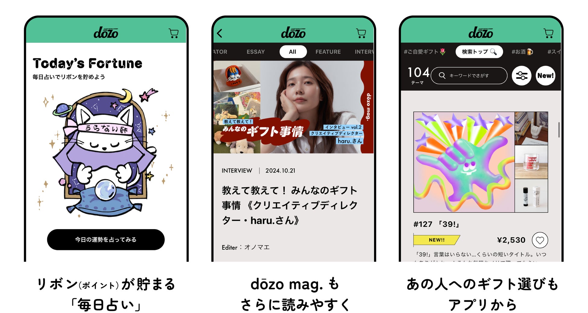 ギフト用途以外にも幅広く楽しんでいただけるアプリとなっていますので、この機会にぜひ「dōzo」のさまざまなコンテンツをお楽しみください!