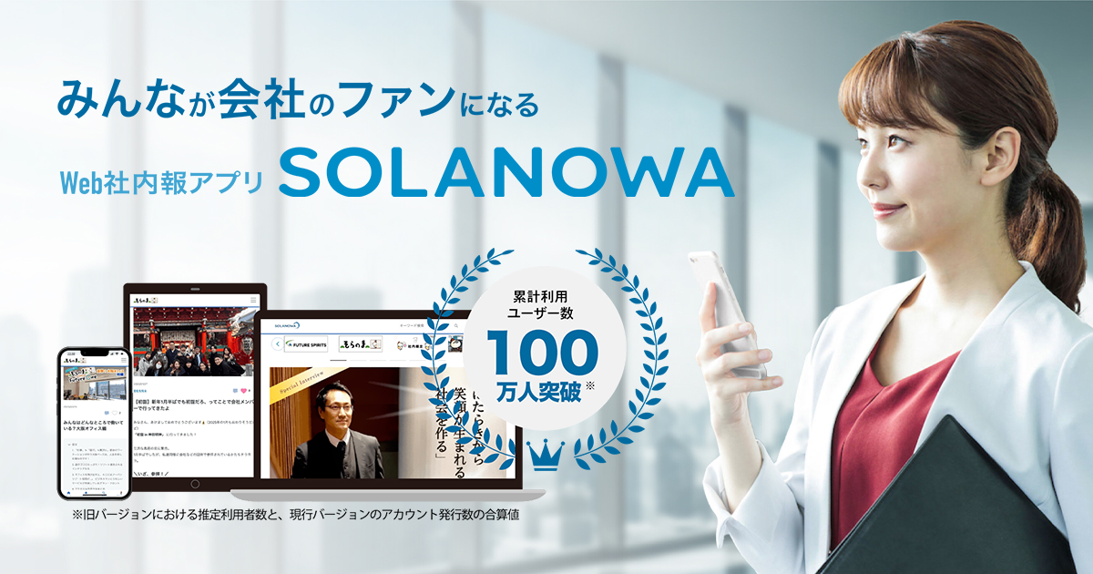 100万人以上が利用するSOLANOWAは、Web社内報を「組織のハブ」として活用し、従業員のエンゲージメントを高めるプラットフォームです。