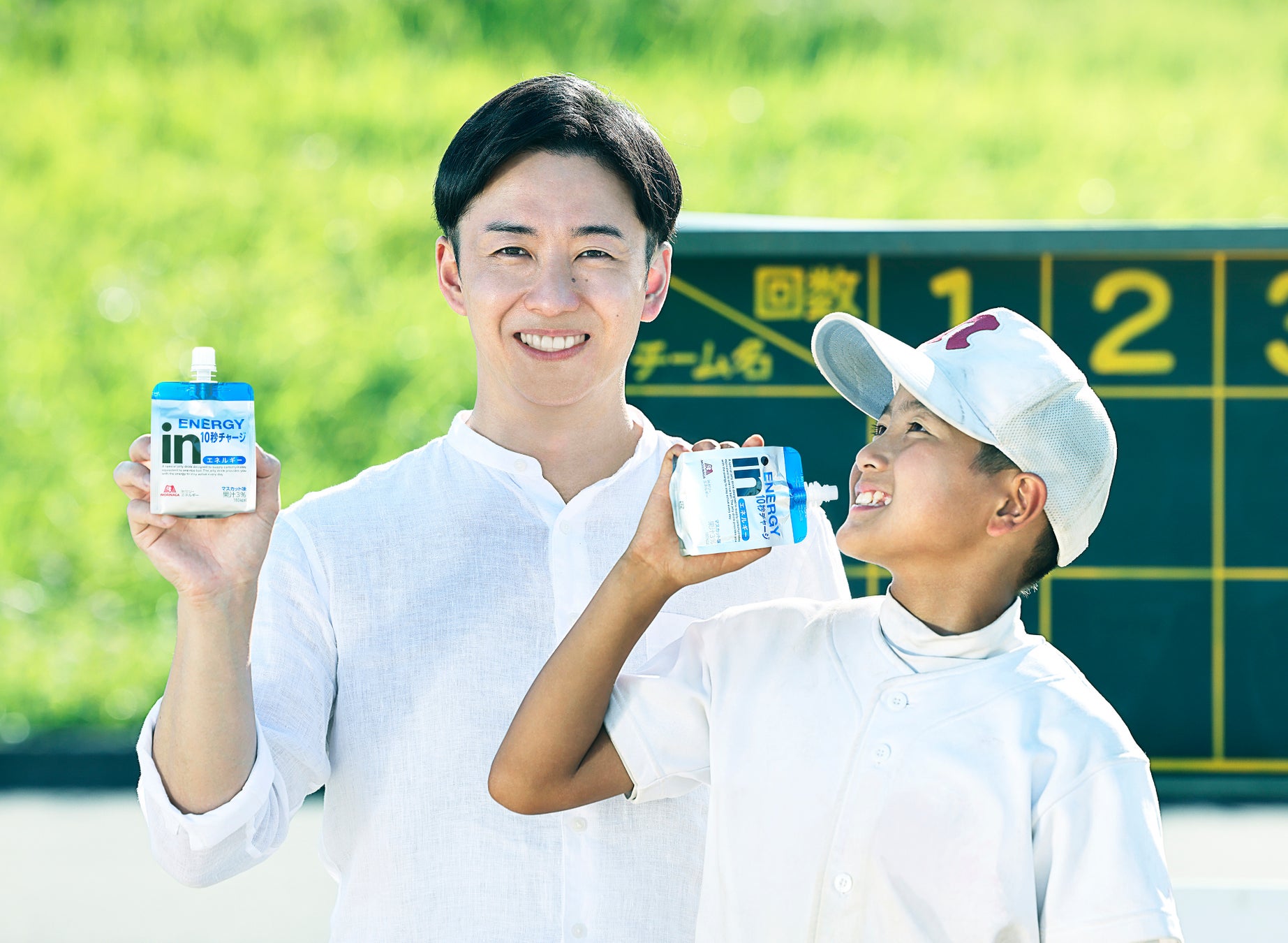 この度僕の大好きな森永製菓さんと、ご一緒させていただけることを大変嬉しく思います。「inゼリー」は学生時代から試合や練習の際、実際によく使用していました。共に成長していけるパートナーになれるよう僕も頑張ります。