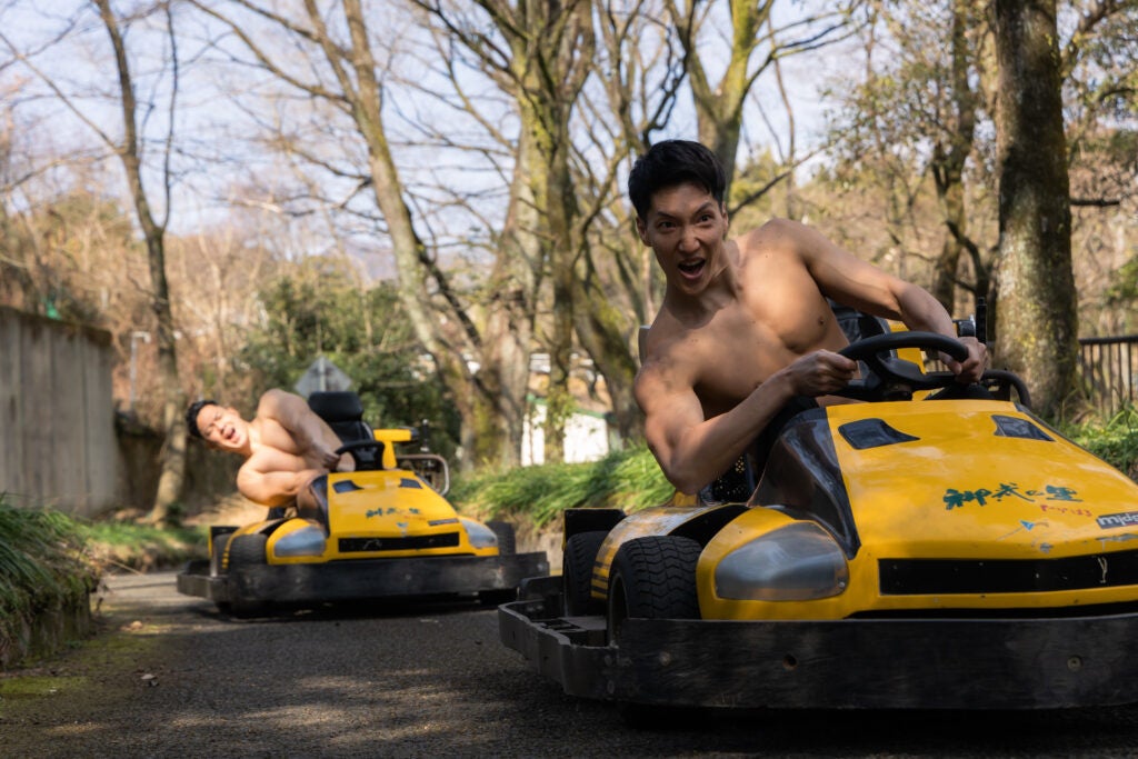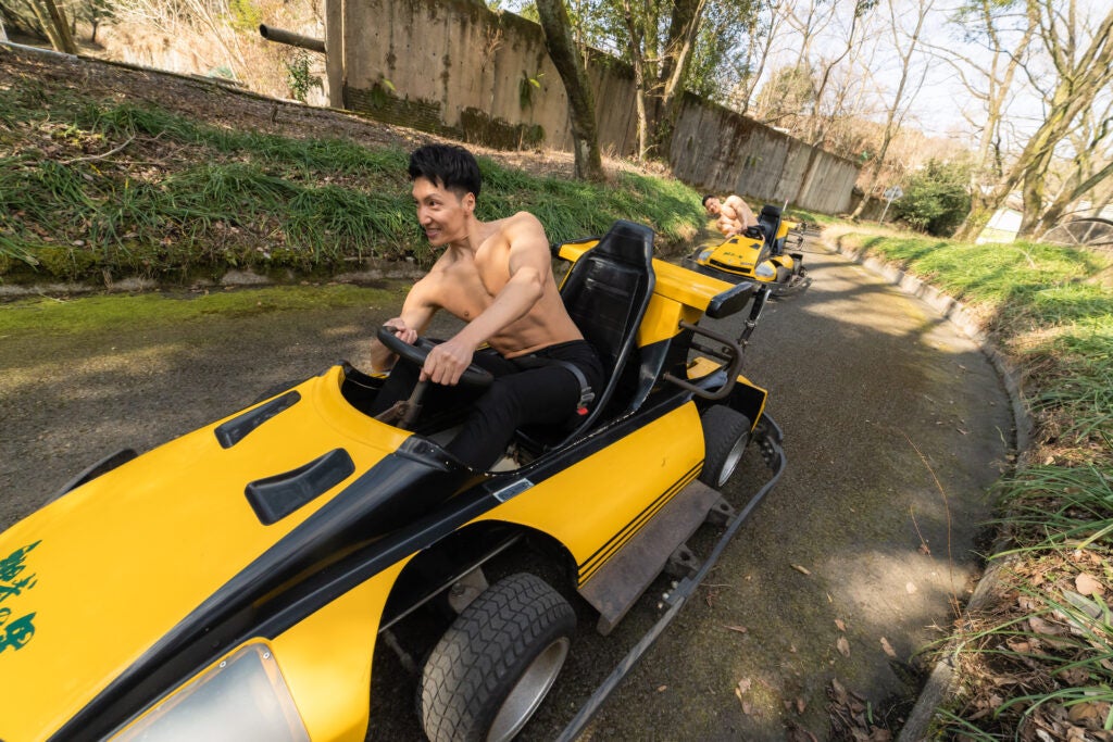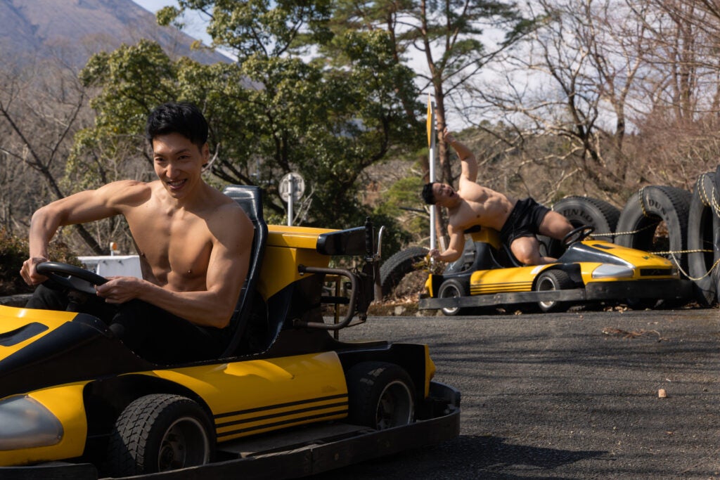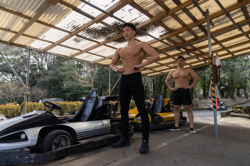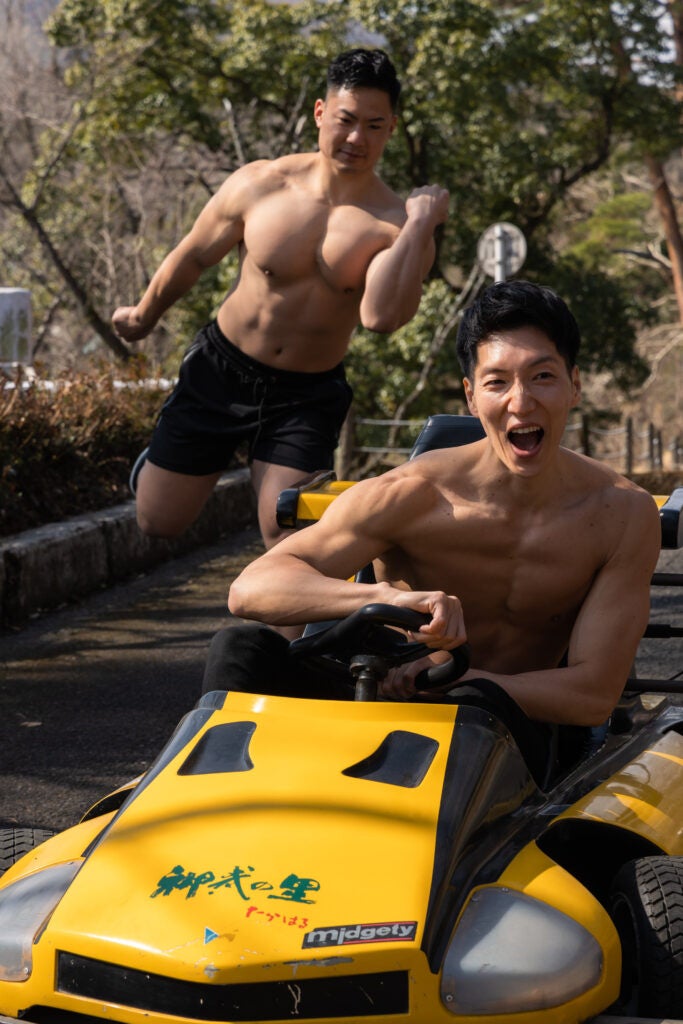 「使う用途ないけど面白い」とSNSやメディアで話題のマッチョのフリー素材・ストックフォトサイト「マッスルプラス」。宮崎県高原町の「皇子原公園」で、激しいゴーカートレースを繰り広げるマッチョたちのフリー素材を撮影しました。