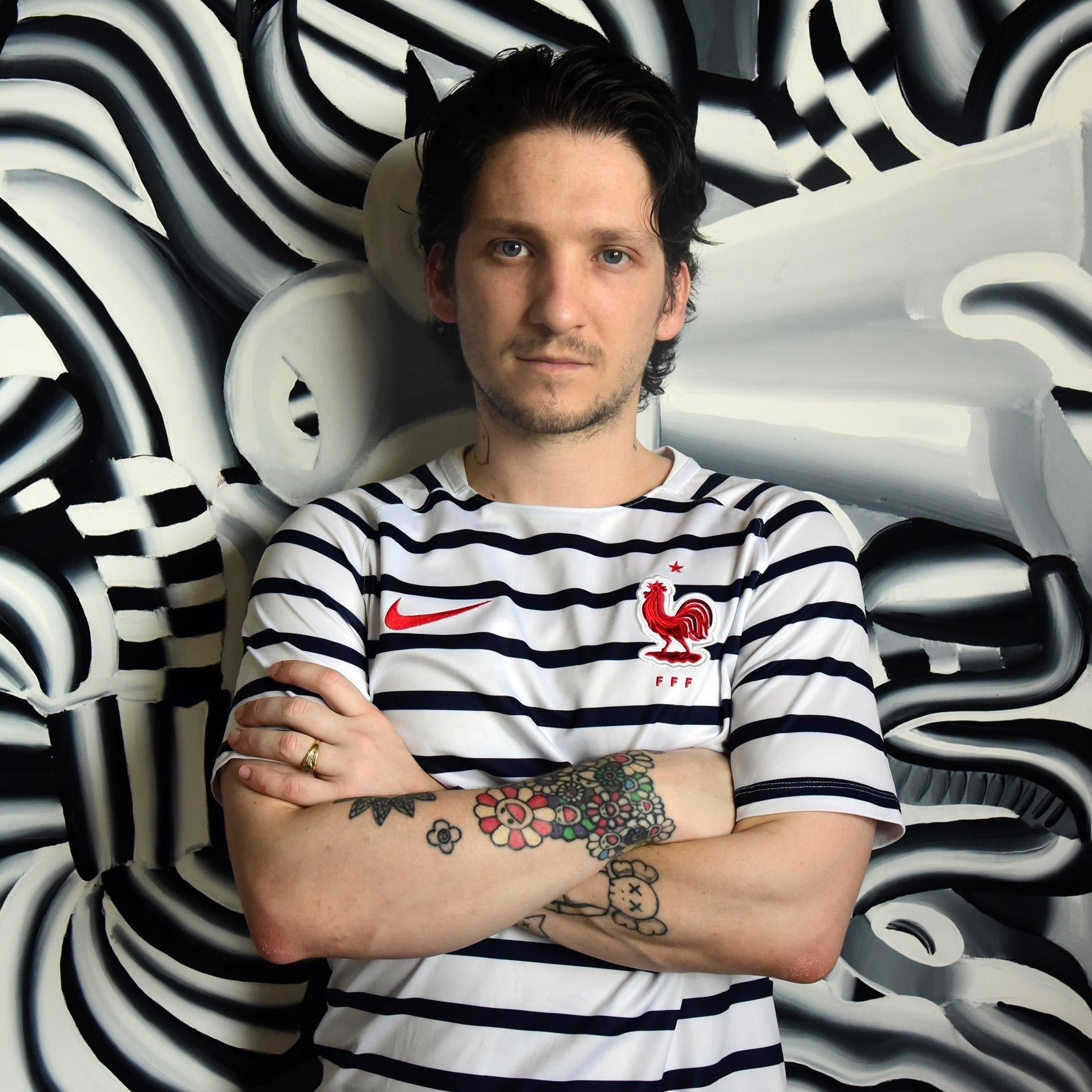 今回は「サステナブル」をテーマに、SDGsの観点から制服を製作するうえで使用しなくなった生地を基にチャリティ企画のための新作アートを制作していただきました。