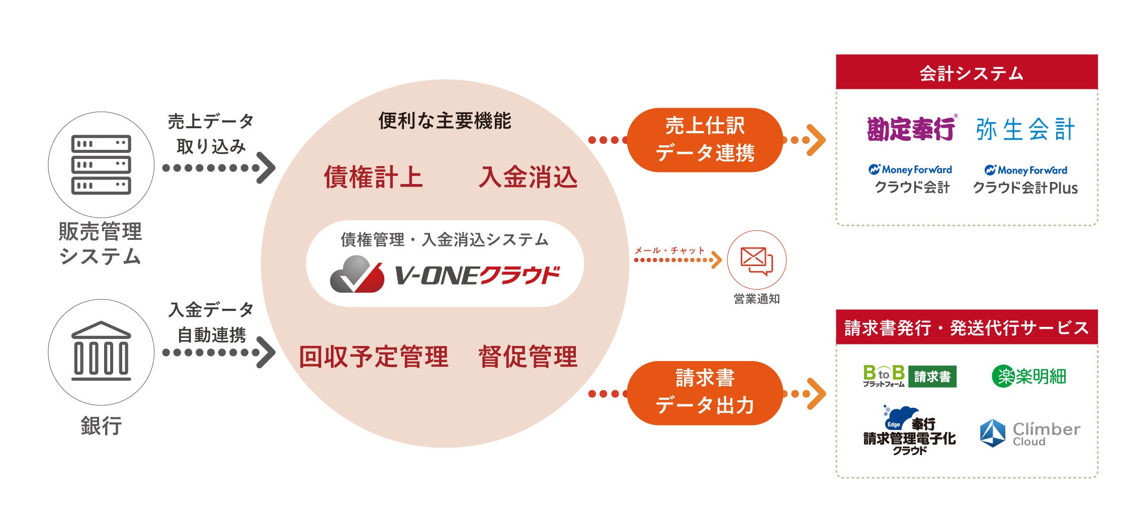 債権管理・入金消込システム『V-ONEクラウド』、債権計上機能、及び会計・経理関連システムとのデータ連携機能を実装して販売開始